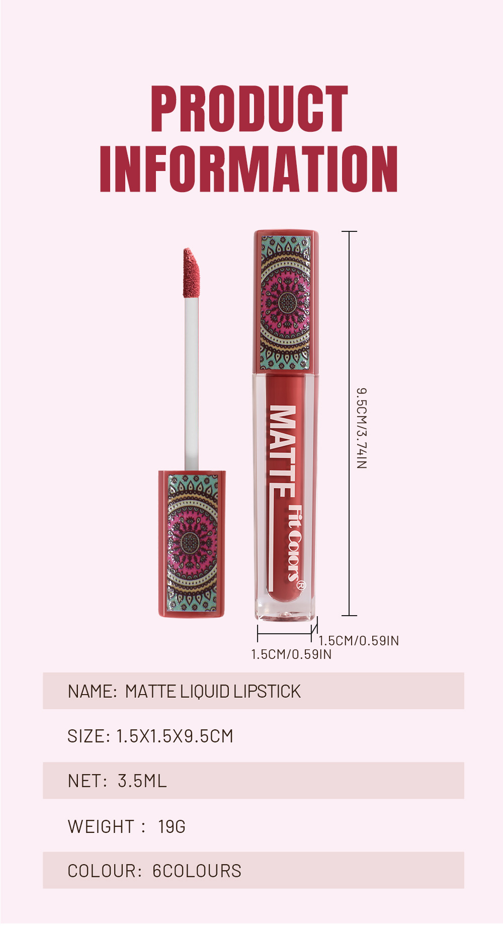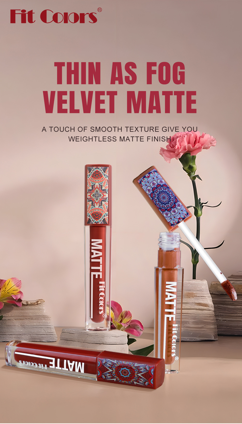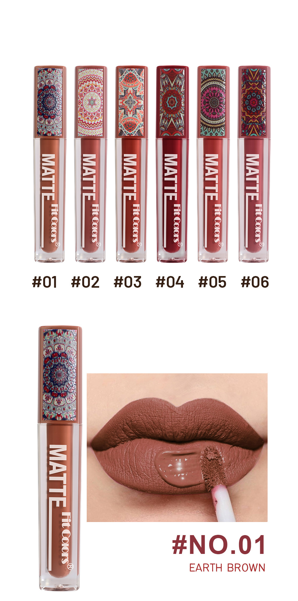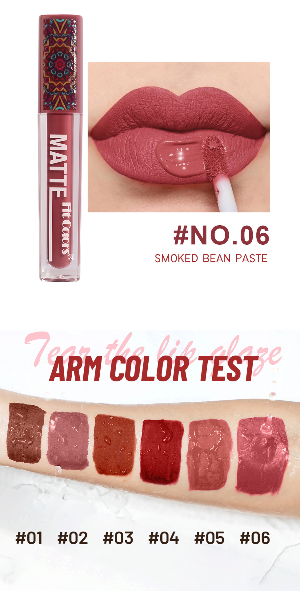 Fit Colors 6-цветный матовый антипригарный блеск для губ в богемном стиле, глазурь для губ, водостойкая долговечная бархатная помада