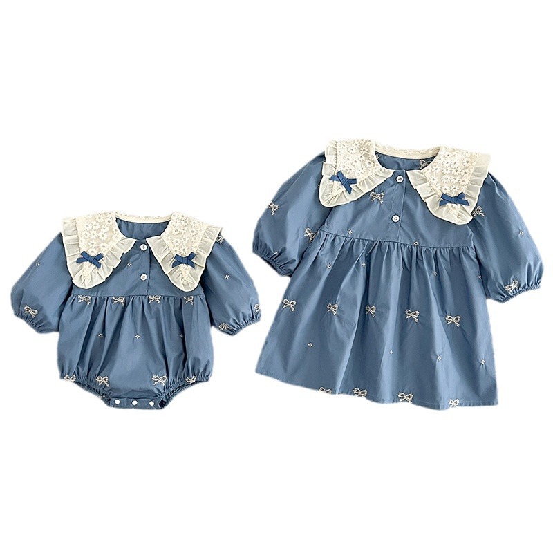 Платье для девочек Корейский бант с вышивкой детский комбинезон весна и осень с длинными рукавами костюм для детей-сестер