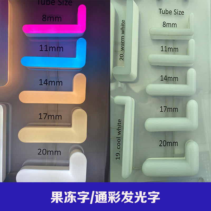 Символы с краями из нержавеющей стали; Безрамочные символы из нержавеющей стали; Акриловые мини-буквы (с подсветкой лица); Акриловые мини-буквы (с подсветкой); Акриловые светящиеся персонажи в полный рост; Символы с подсветкой из нержавеющей стали; Светящиеся символы из нержавеющей стали и смолы; Боковые персонажи; Символы лампочек/символы пузырьков; Пропасть слов.; Красочные слова; Цветные слова (тип бегущего огня); Искривленные символы; Красочные персонажи/желеобразные персонажи