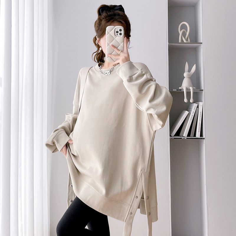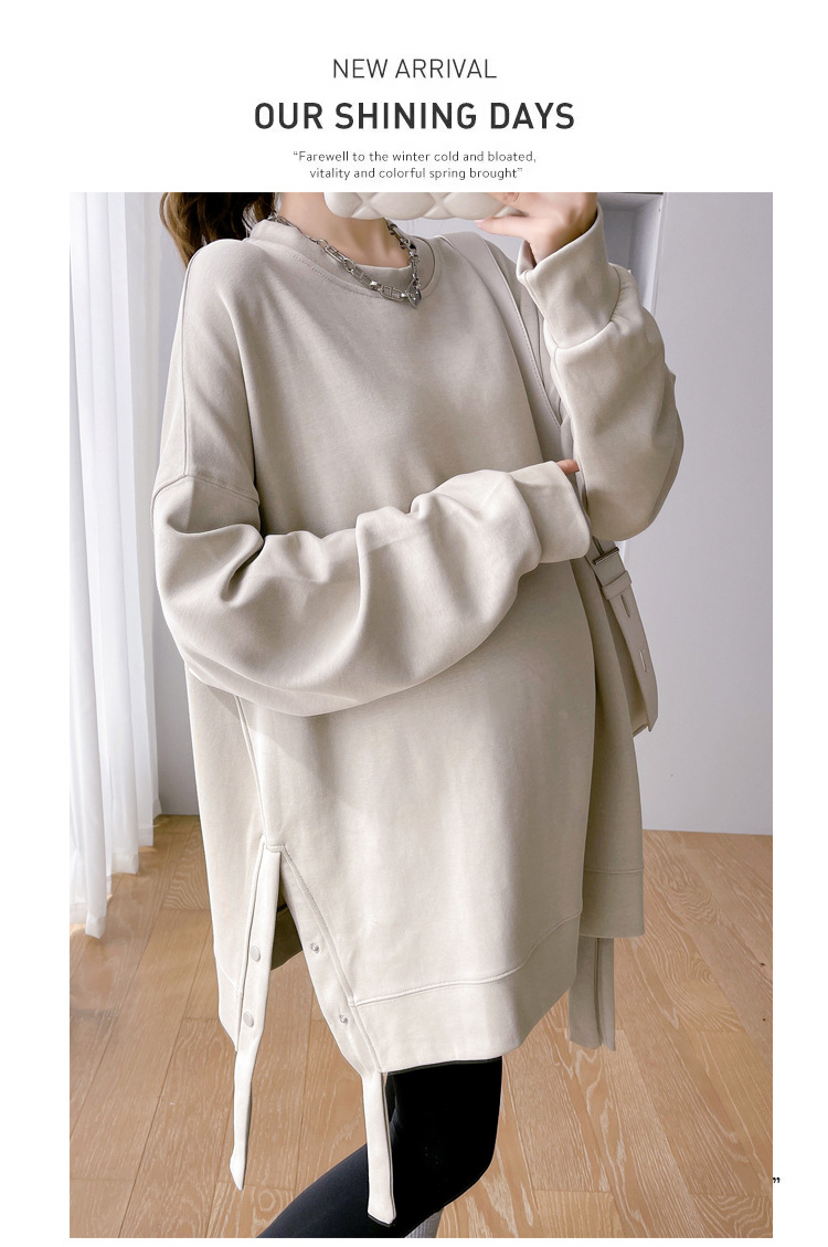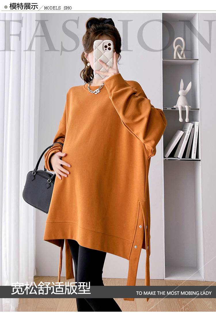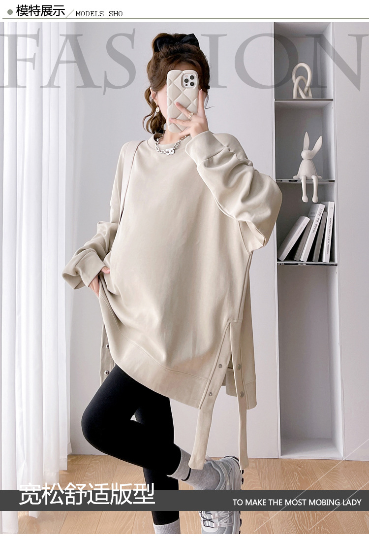 Реальные фото в наличии~2025 – новая коллекция: утепленная осенне-зимняя одежда для беременных, свободный повседневный свитшот средней длины, больших размеров, модный.