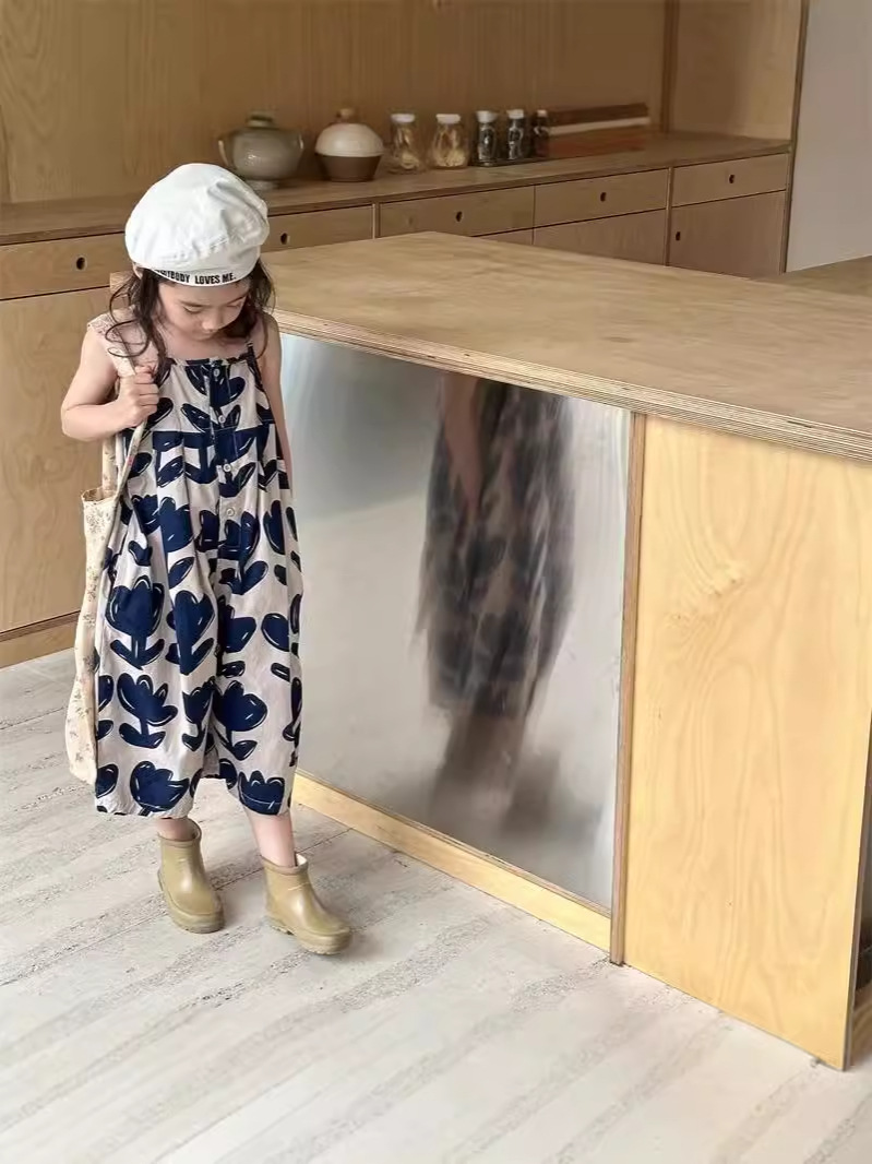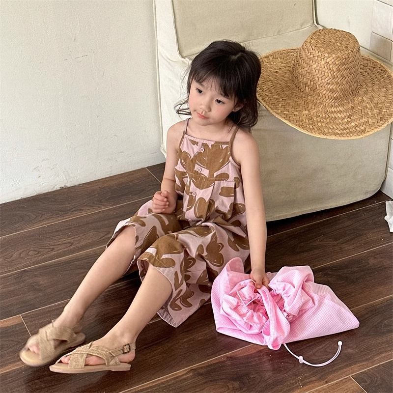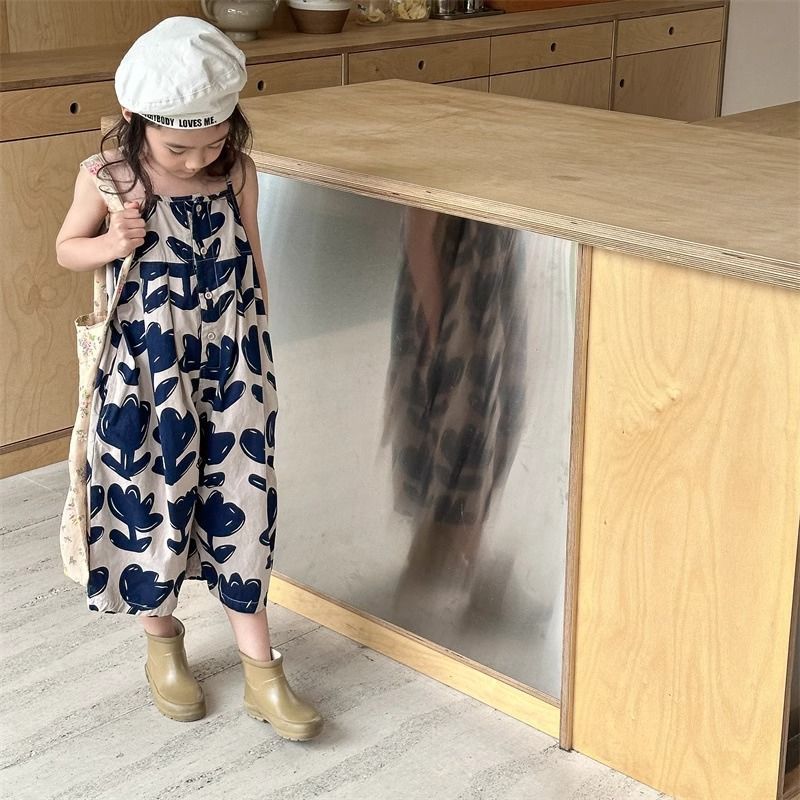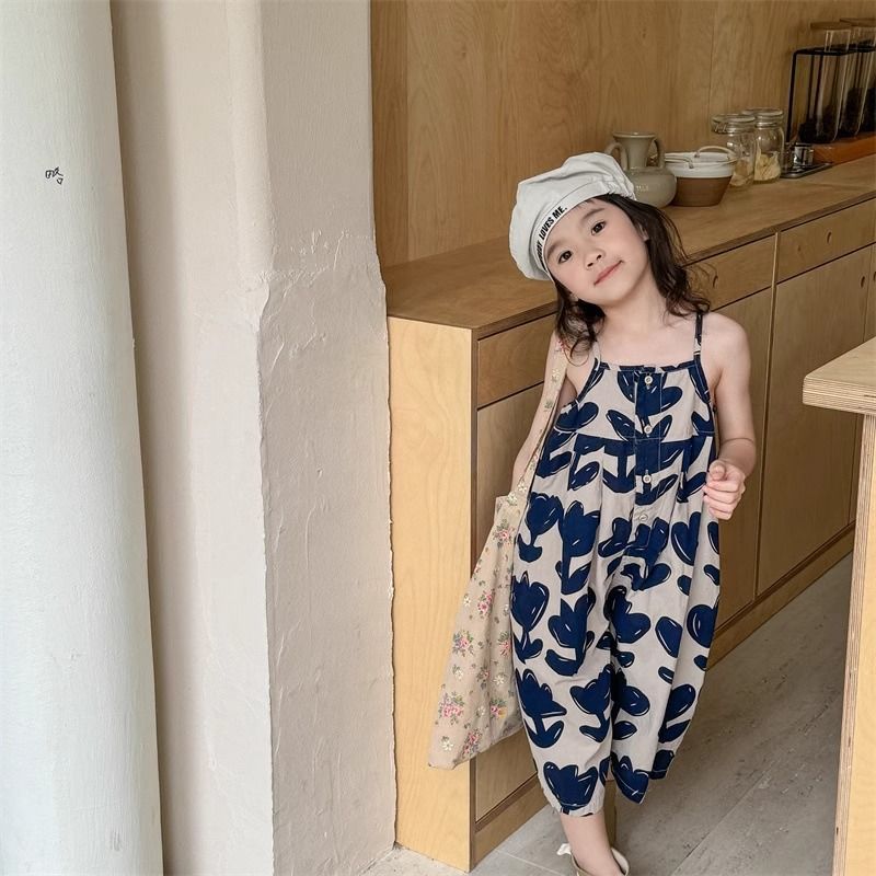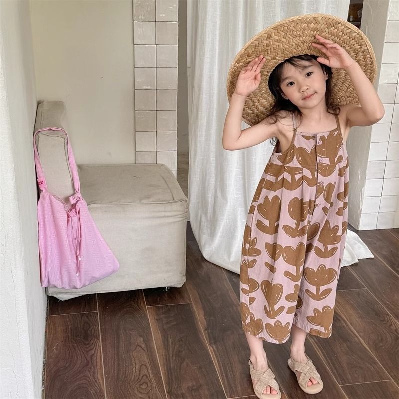 Комбинезоны для девочек 2025 года легкие и тонкие! Корейский повседневный модный комбинезон на подтяжках для девочек, детский комбинезон на широких штанинах 7