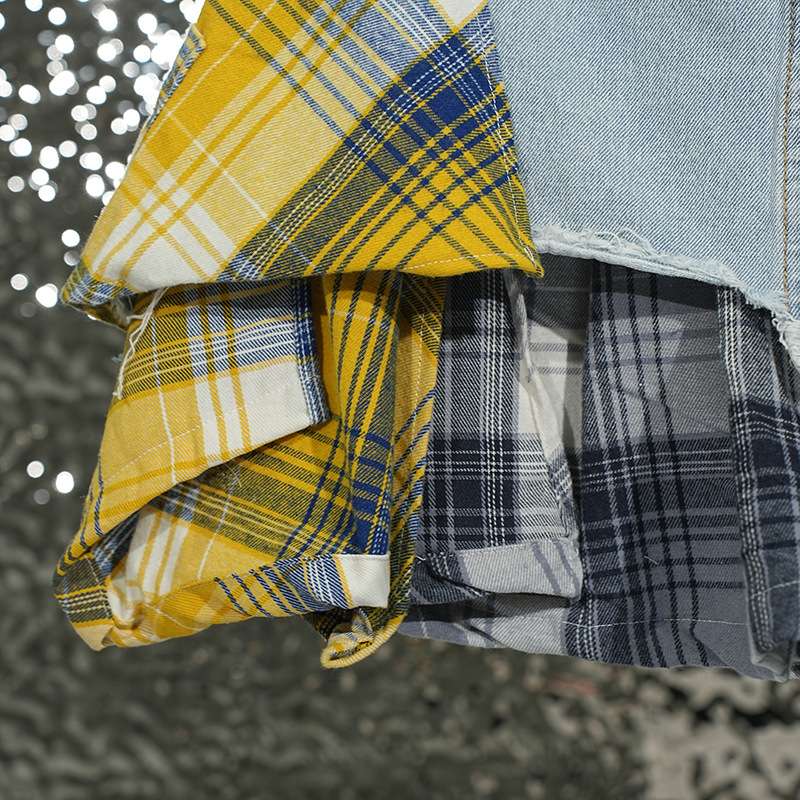 Европейские и американские дизайнеры джинсовая юбка тяжелой промышленности женская летняя новая сетка сшивания, чтобы сблизить нерегулярные юбки-полубу