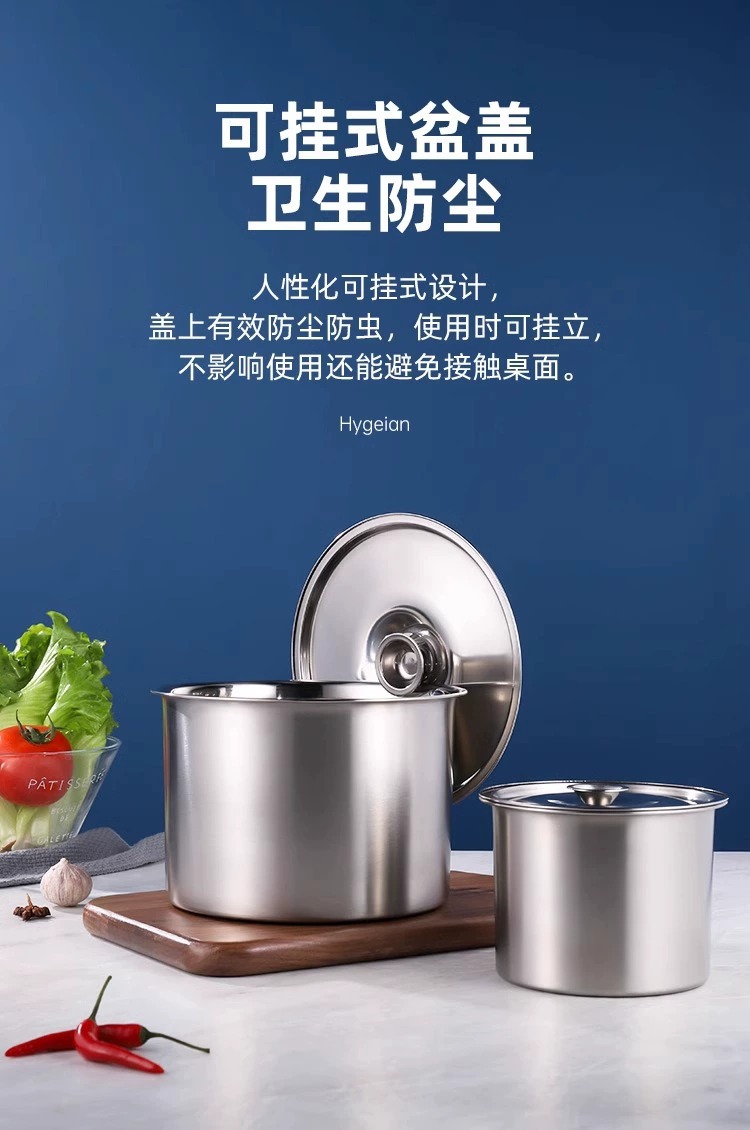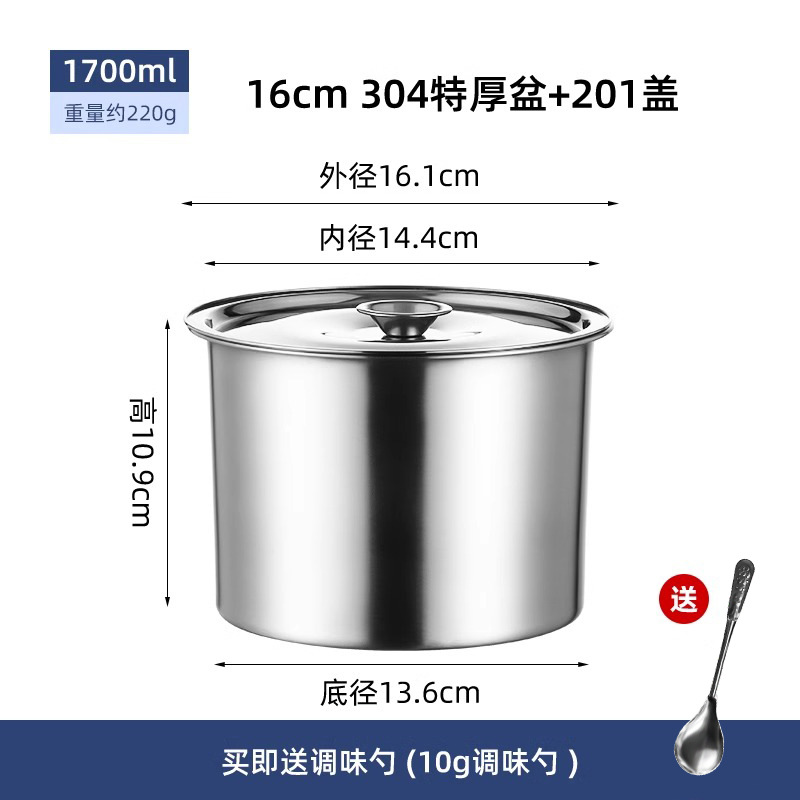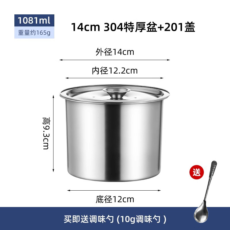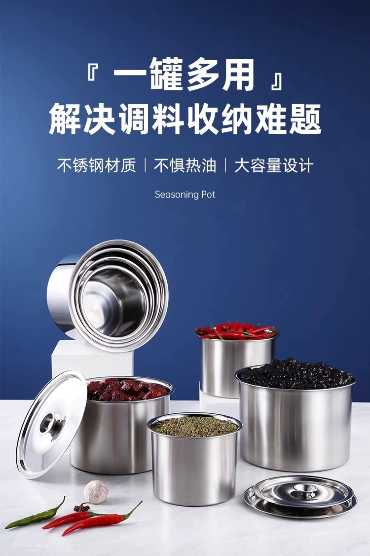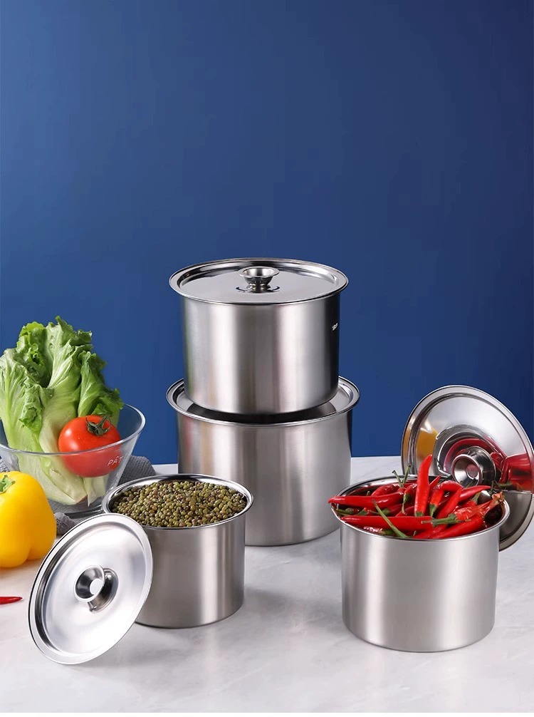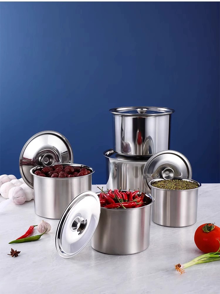 304 из нержавеющей стали приправ резервуар для утолщения цилиндр с крышкой для кухни