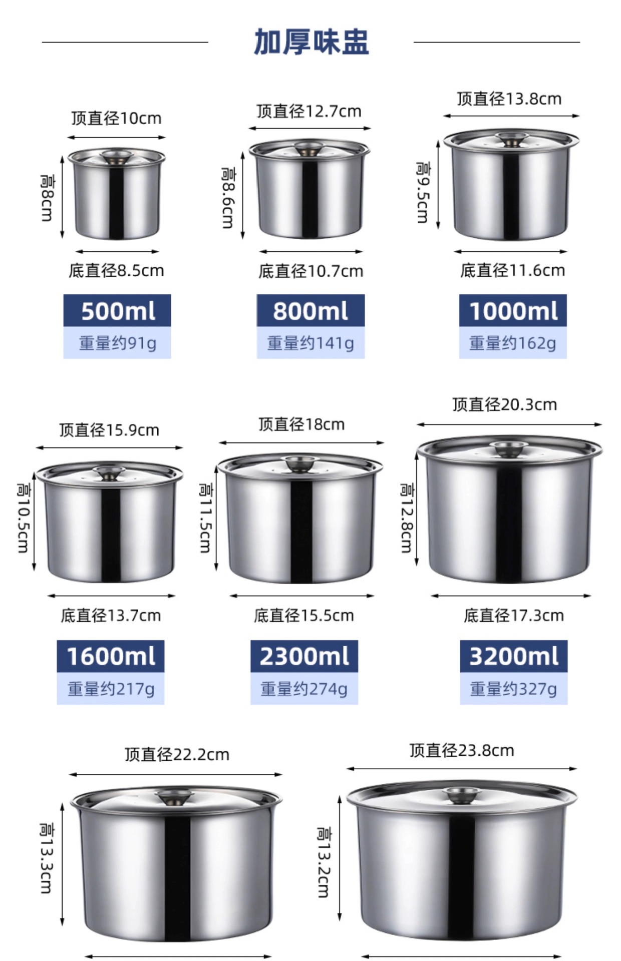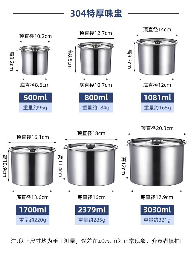 [304 банка для приправ пищевого класса 10 см (с крышкой); [304 пищевой] банка для приправ 12 см (с крышкой); [304 пищевой] банка для приправ диаметром 14 см (с крышкой); [304 пищевой] банка для приправ 16 см (с крышкой); [304 пищевой] банка для приправ 18 см (с крышкой); [304 пищевой] банка для приправ диаметром 20 см (с крышкой); [304 пищевой] банка для приправ 22 см (с крышкой); [304 пищевой] банка для приправ диаметром 24 см (с крышкой); [304 пищевой класс] банка для приправ 10 см (без крышки); [304 пищевой] банка для приправ диаметром 12 см (без крышки); [304 пищевой] банка для приправ диаметром 14 см (без крышки); [304 пищевой] банка для приправ диаметром 16 см (без крышки); [304 пищевой] банка для приправ 18 см (без крышки); [304 пищевой] банка для приправ диаметром 20 см (без крышки); [304 пищевой] банка для приправ диаметром 22 см (без крышки); [304 пищевой] банка для приправ диаметром 24 см (без крышки)