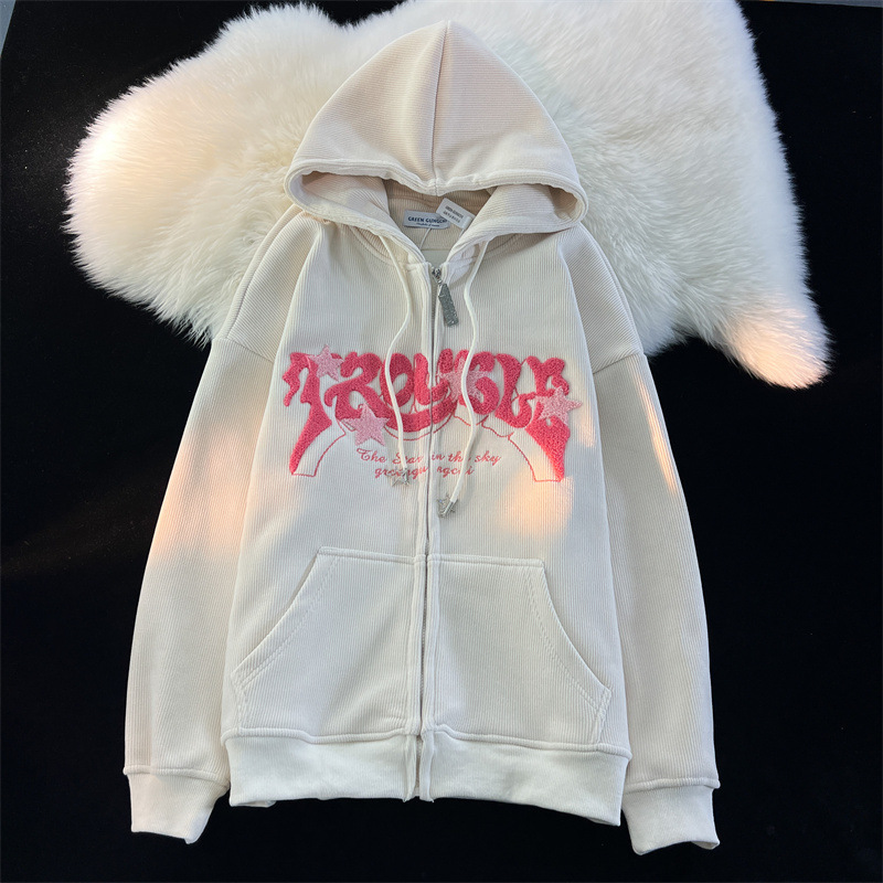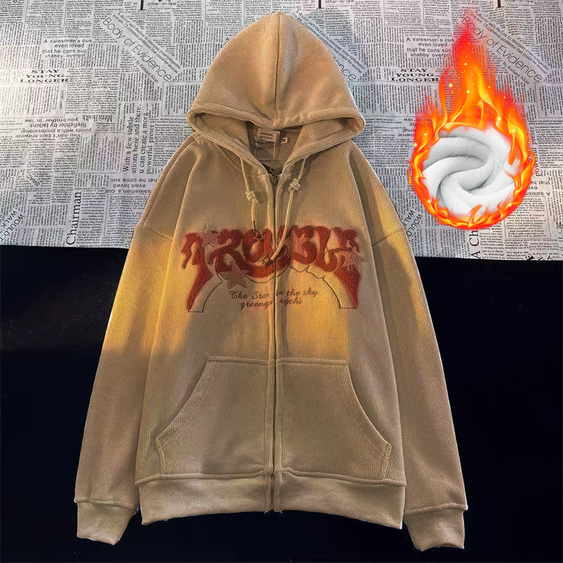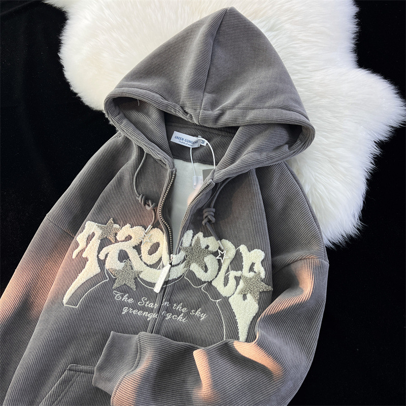 Американский vintage звезды вельветовый кардиган куртка женский весенний и осенний свободный ins прилив уличной свитер с капюшоном