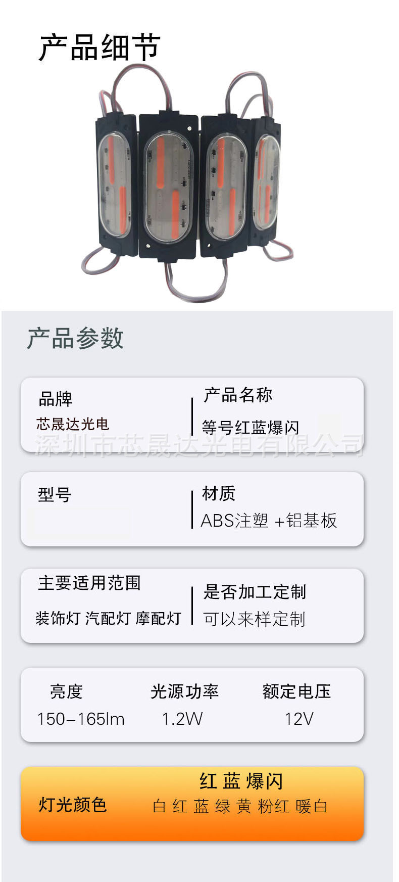 Гуанчжоу светодиодный module 12V24V боковой фонарь красный синий взрывной светодиодный предупреждающий декор