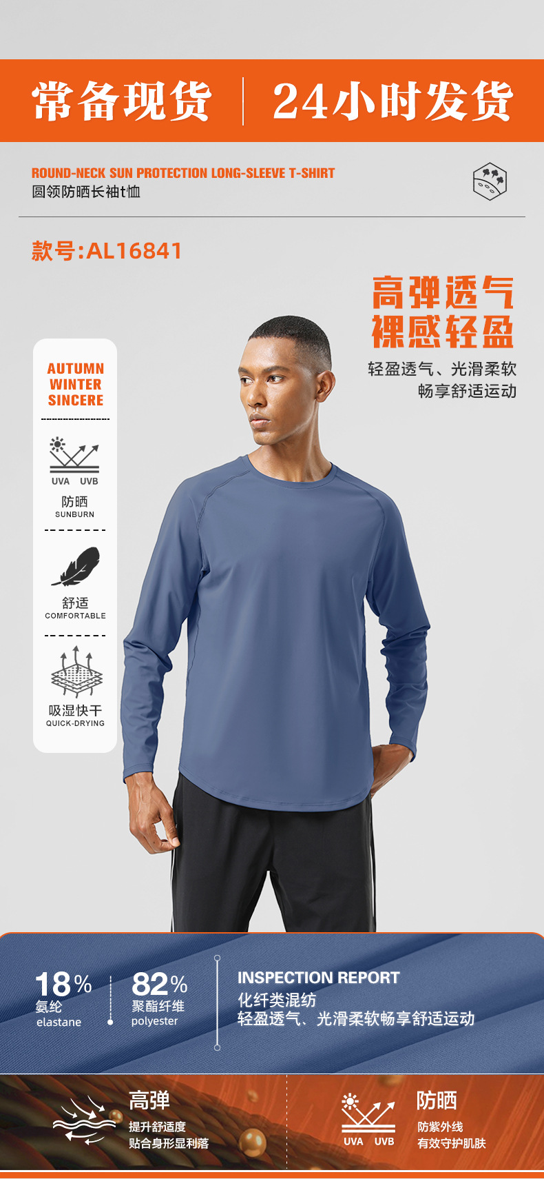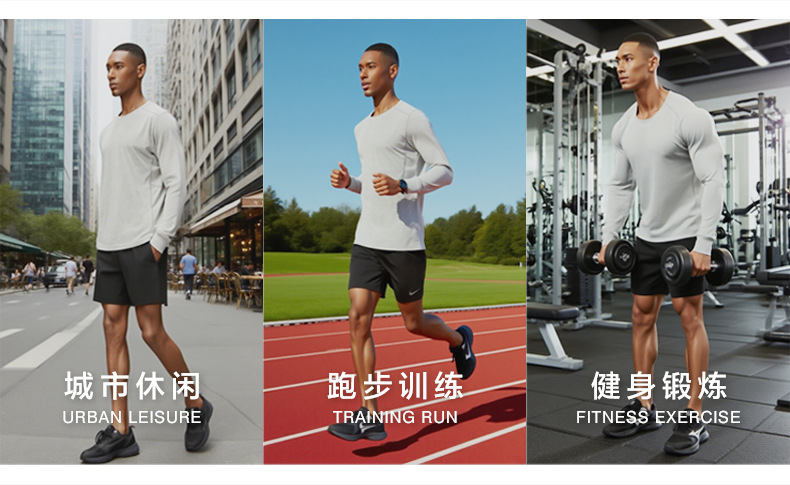上衣秋冬跑步圆领速干长袖t恤紧身衣运动男士压缩衣健身房训练服