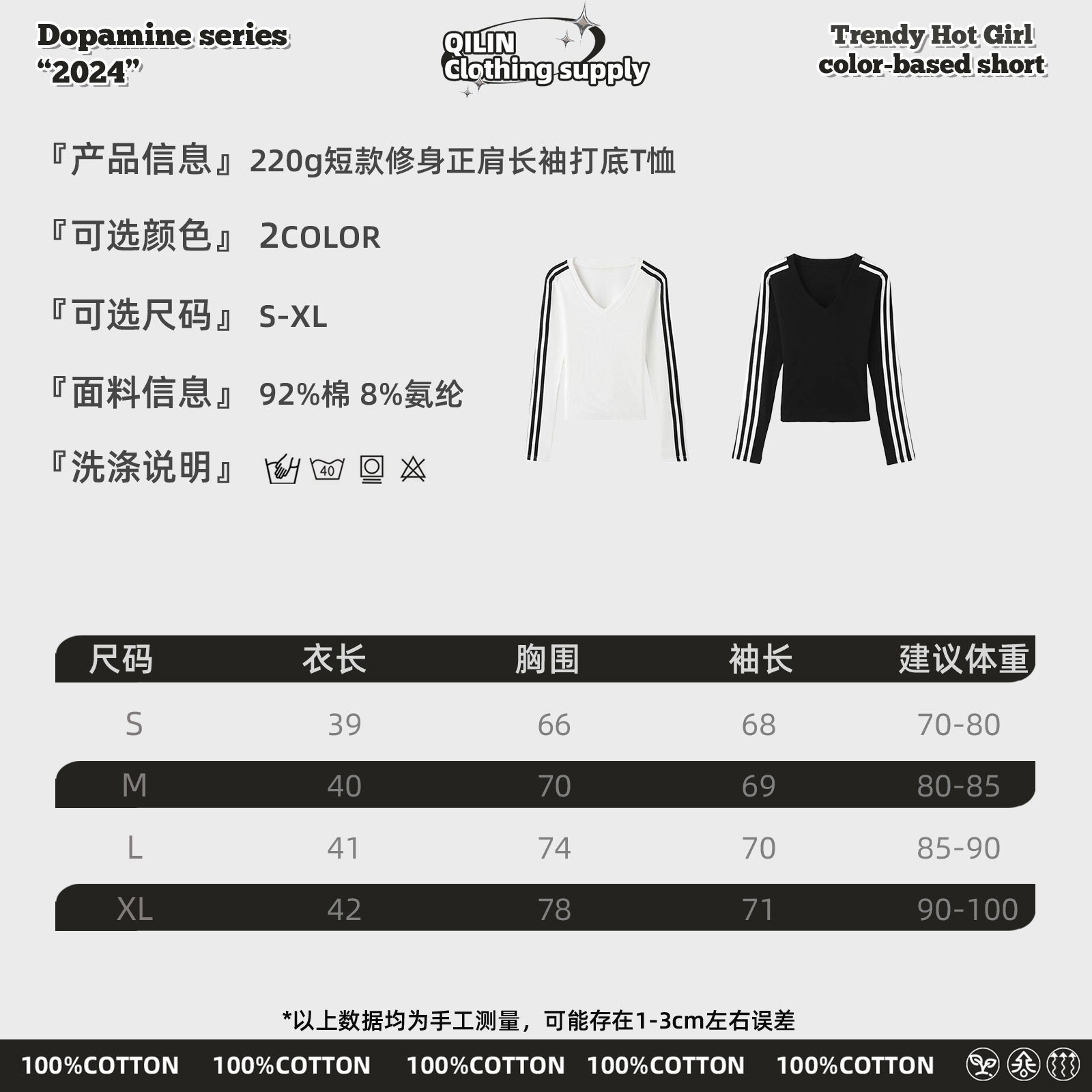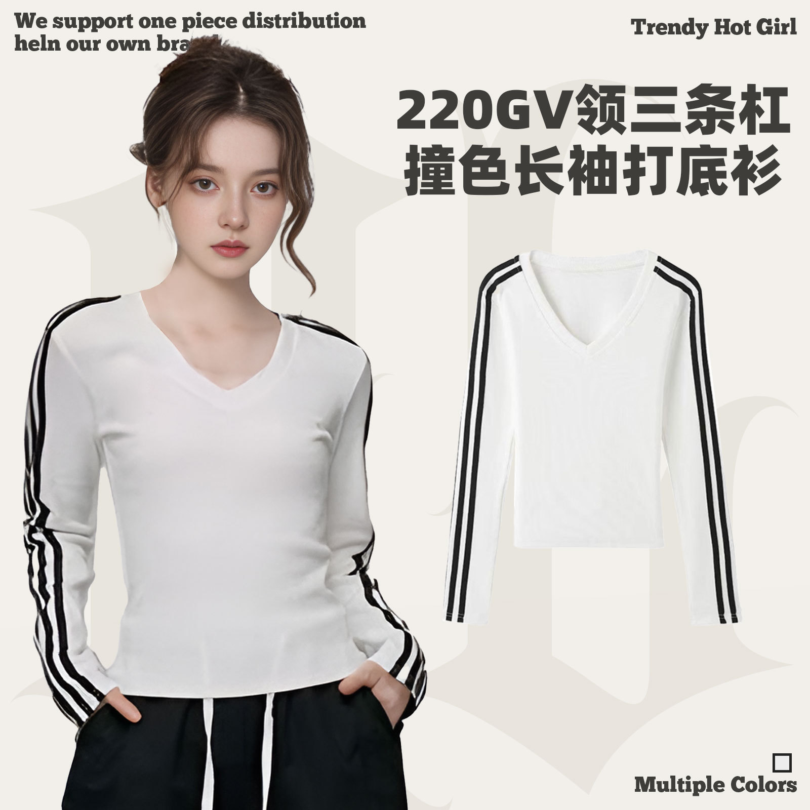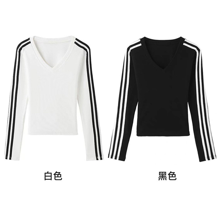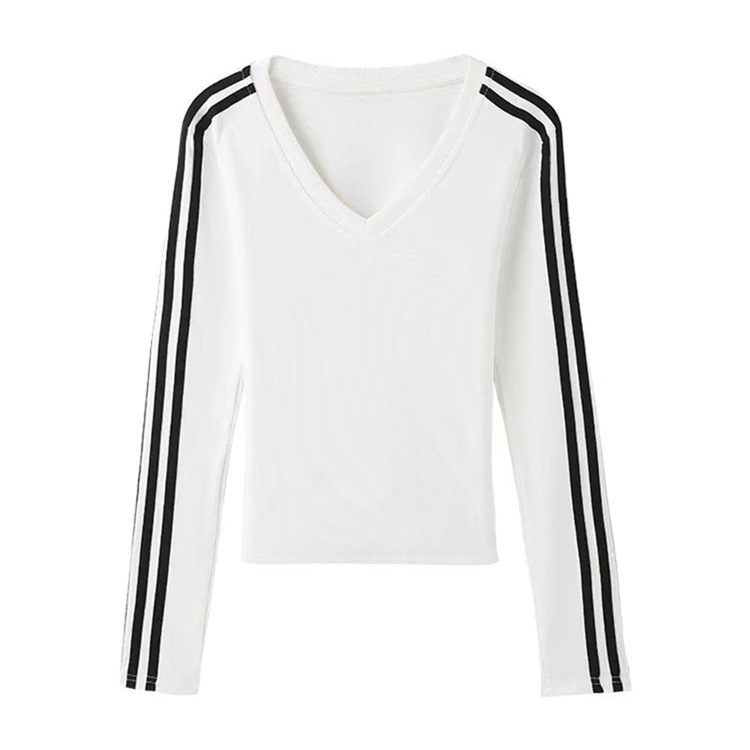 Осенняя горячая девушка с длинным рукавом с длинным рукавом, нижняя футболка 2024 новый тонкая с тремя полосами