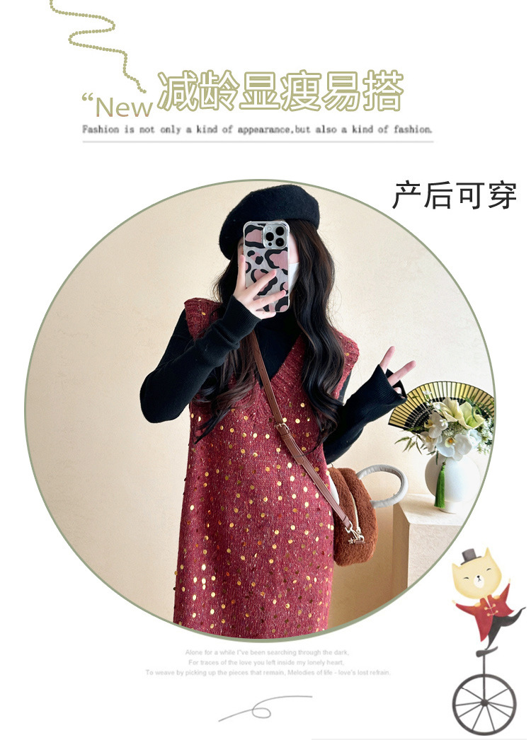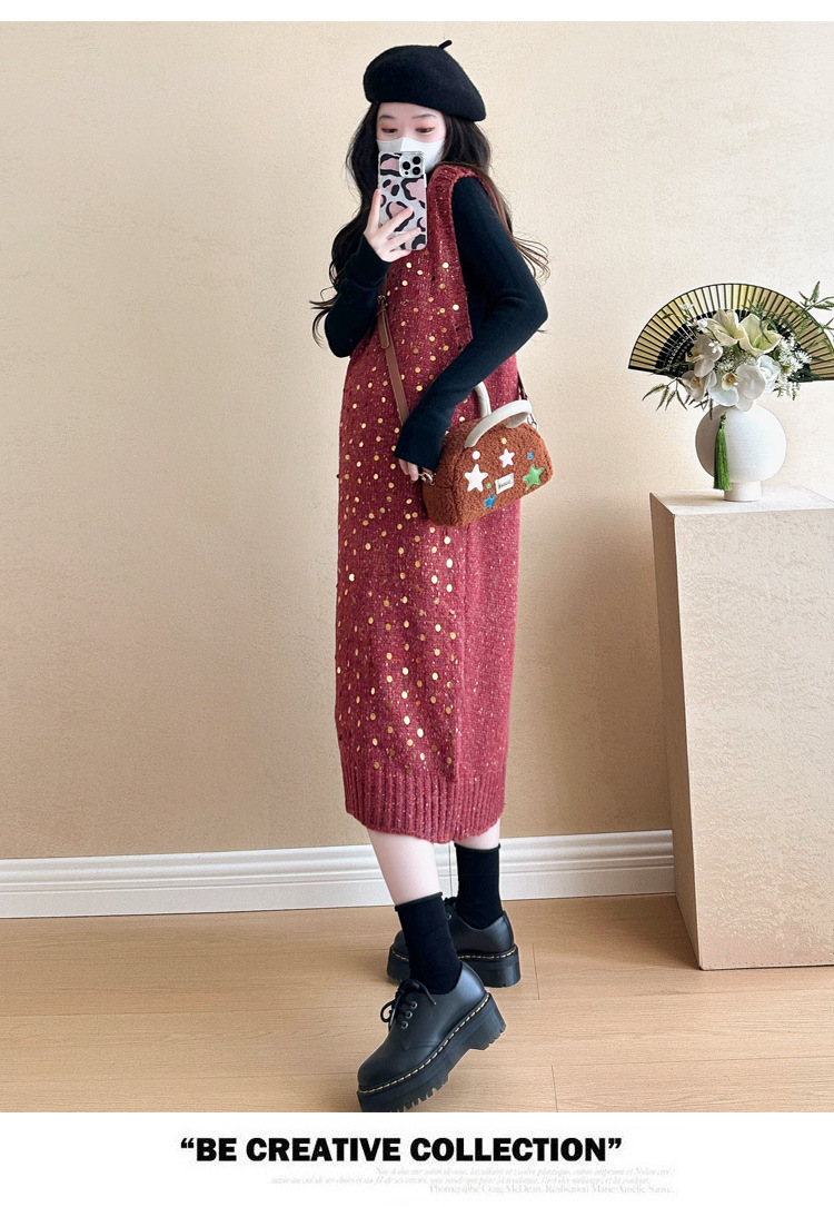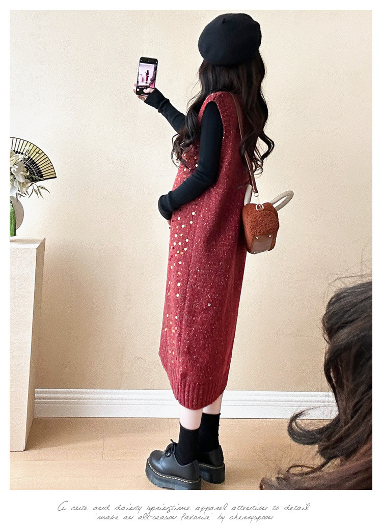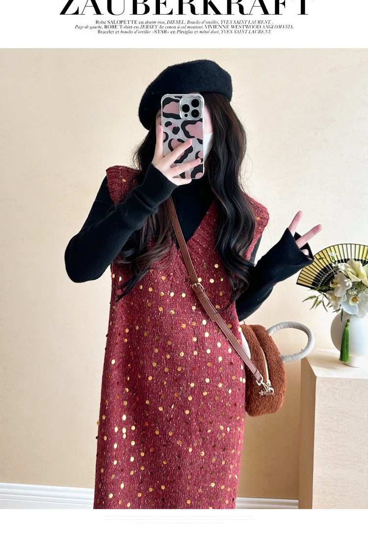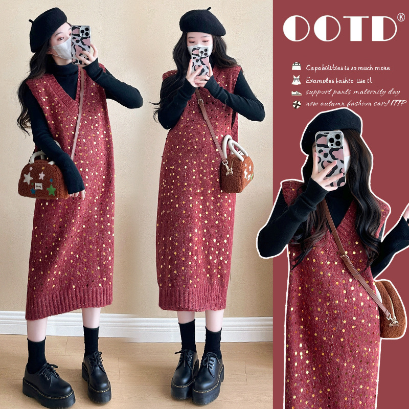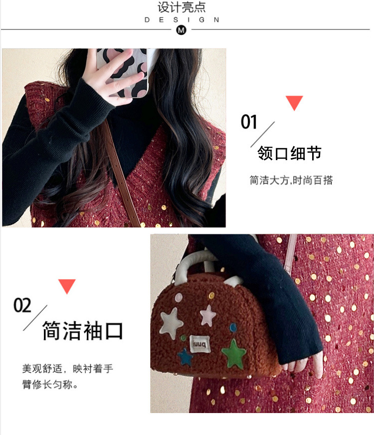 Реальные фото в наличии! Новинка осени/зимы 2025: комплект в корейском стиле от интернет-знаменитостей — блестящее платье-база с тяжелой вышивкой и жилетом в уличном стиле.
