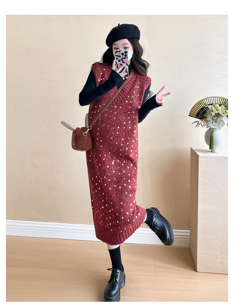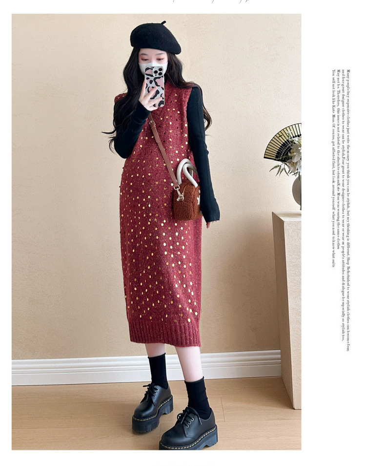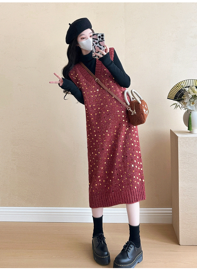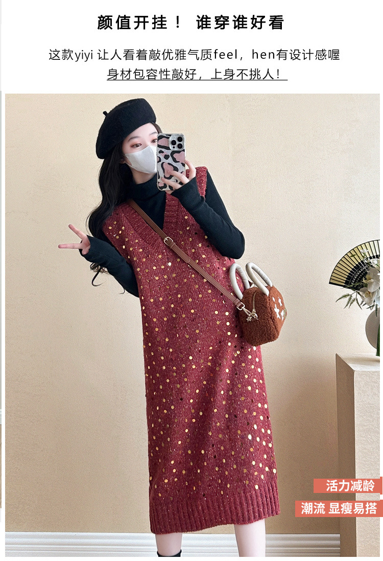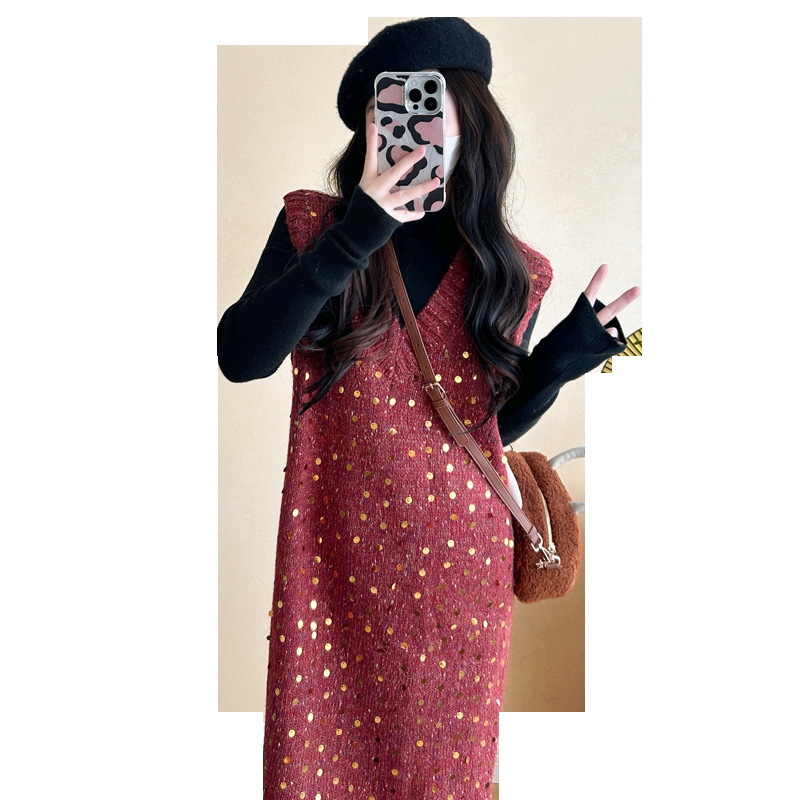 Реальные фото в наличии! Новинка осени/зимы 2025: комплект в корейском стиле от интернет-знаменитостей — блестящее платье-база с тяжелой вышивкой и жилетом в уличном стиле.