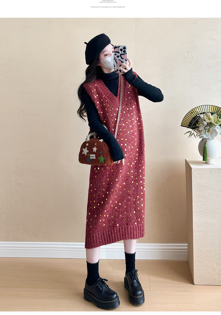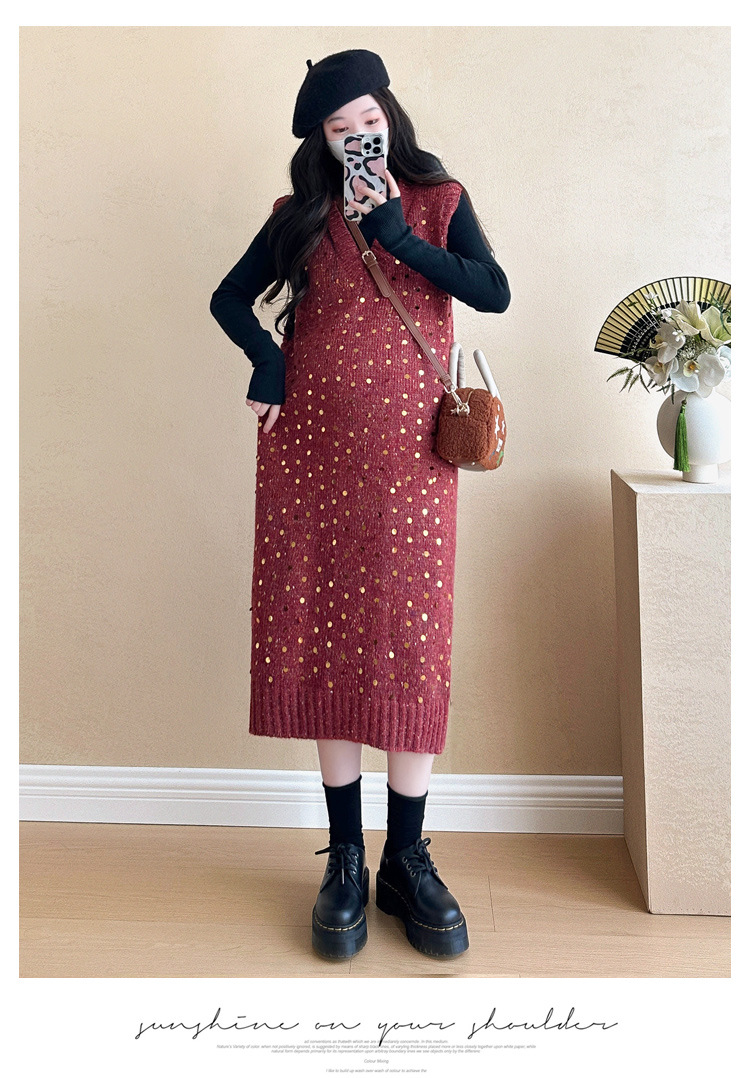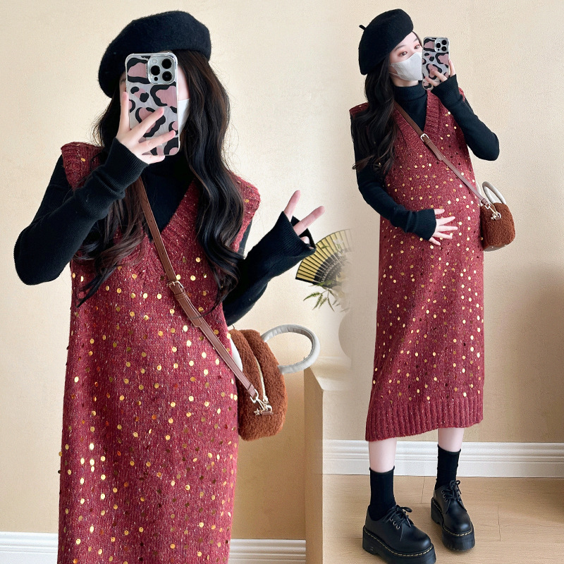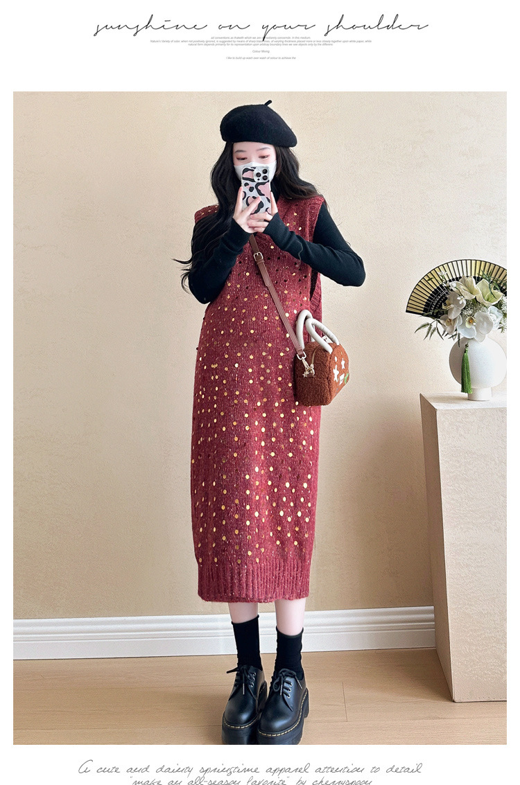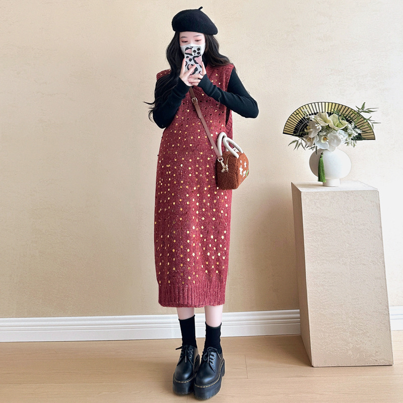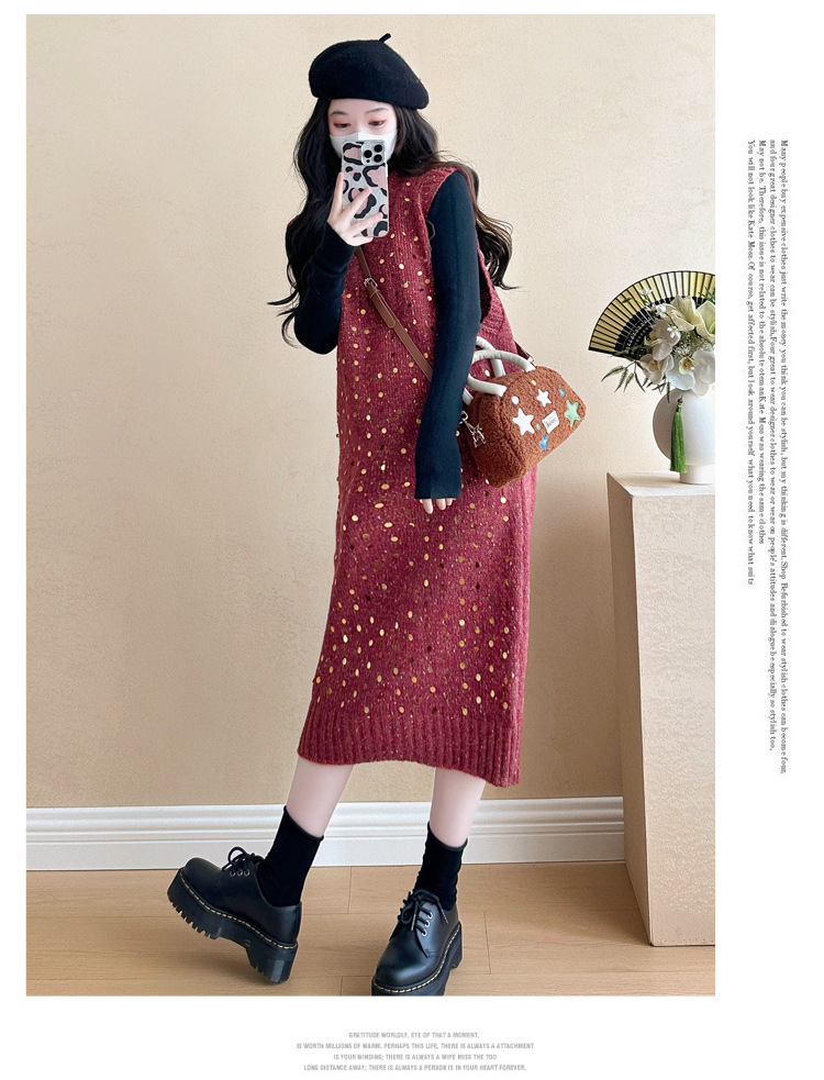 Реальные фото в наличии! Новинка осени/зимы 2025: комплект в корейском стиле от интернет-знаменитостей — блестящее платье-база с тяжелой вышивкой и жилетом в уличном стиле.