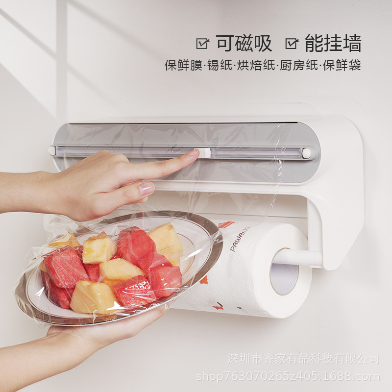 2-в-1 для хранения полиэтиленовой пленки и резака для кухонной бумаги для хранения свежей сумки держатель магнитного всасывания холодильник без отверстий