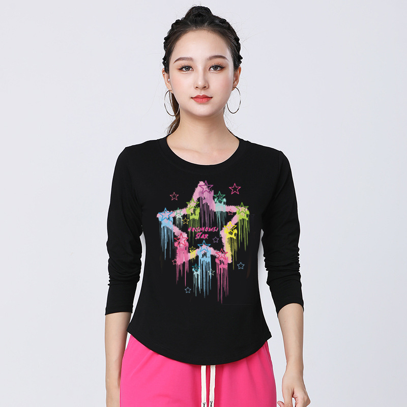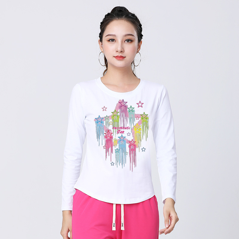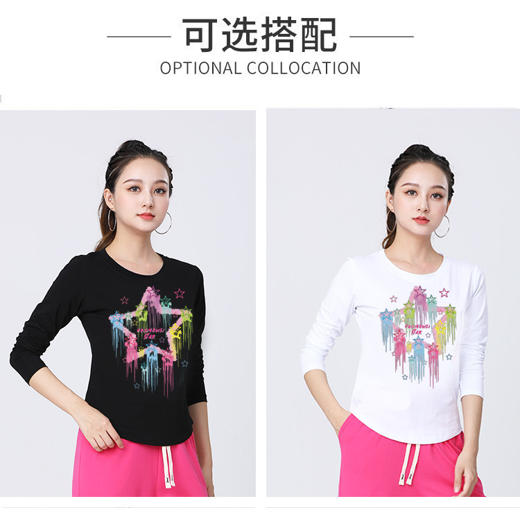 Весенний и осенний новый костюм для танца с длинными рукавами топы из восьми цветных хлопковых принтов