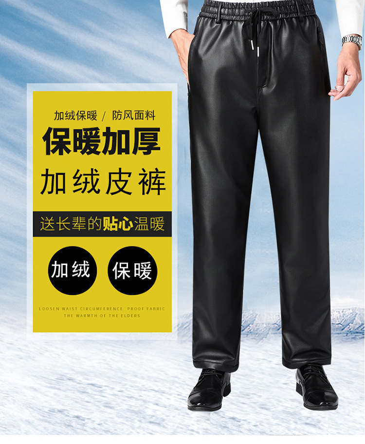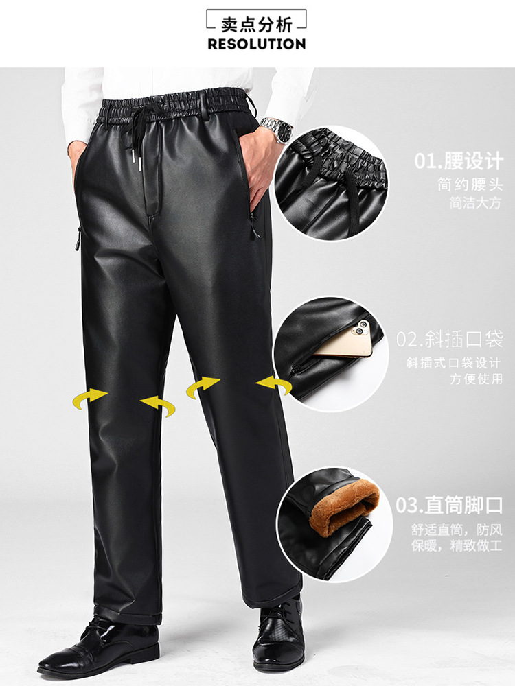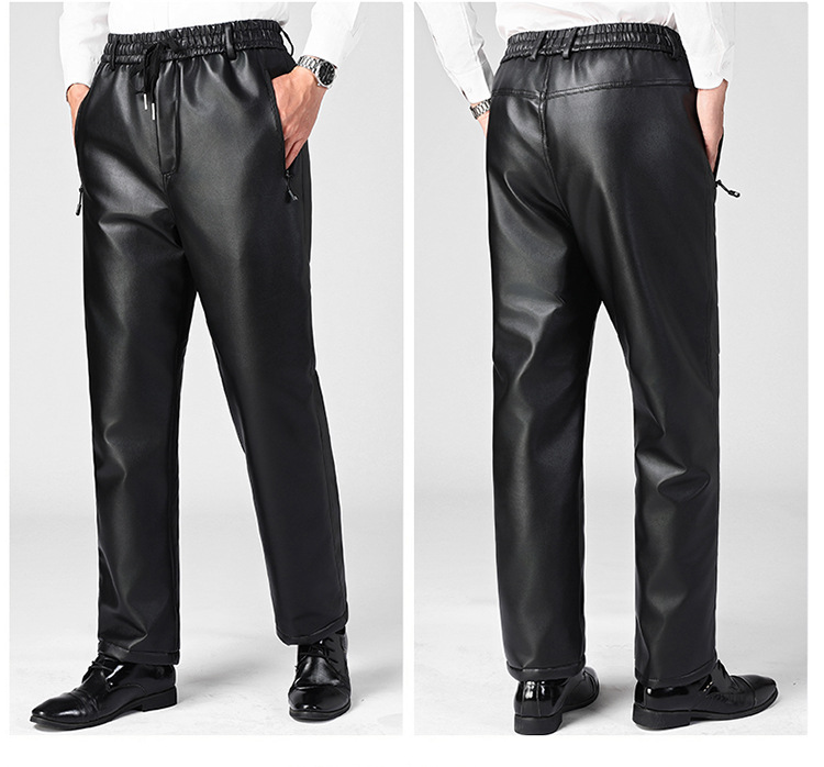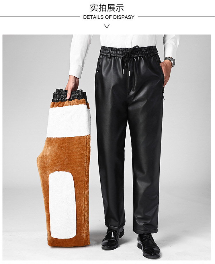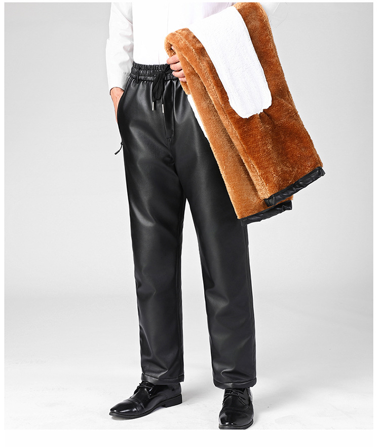 Мужские кожаные брюки для зимы, на флисовой подкладке и утепленные, водонепроницаемые повседневные брюки для курьеров и служб доставки, теплые и свободные хлопковые брюки для защиты от холода.