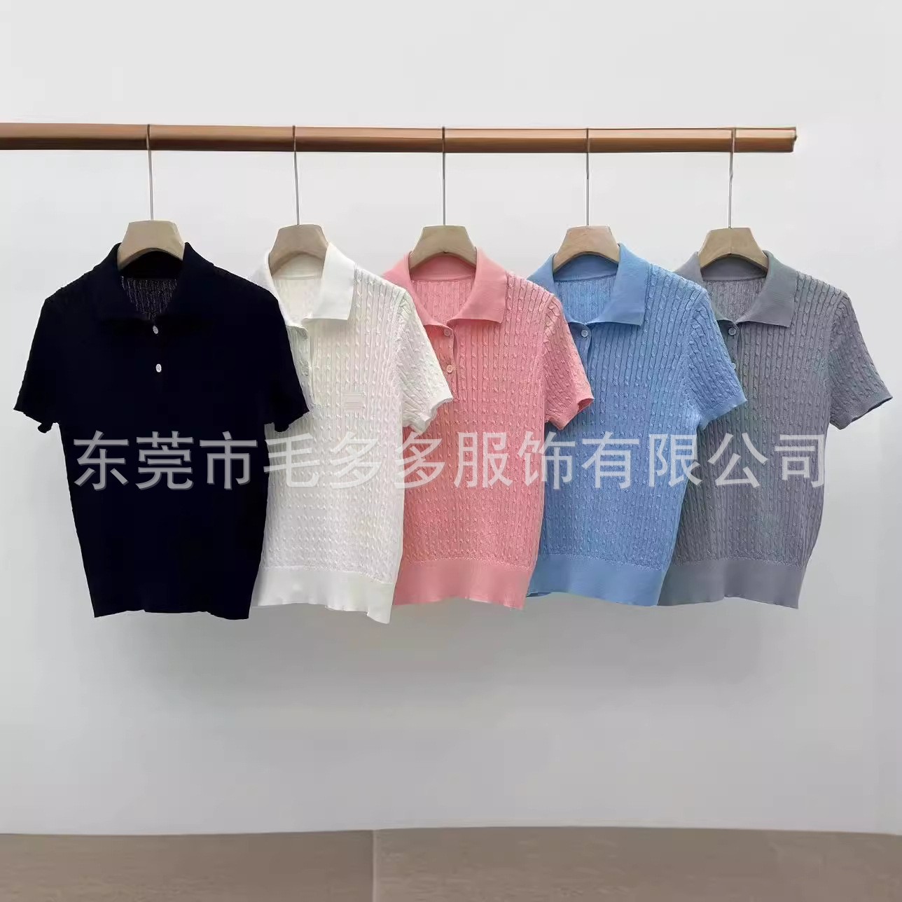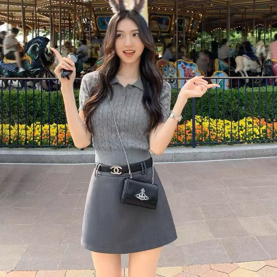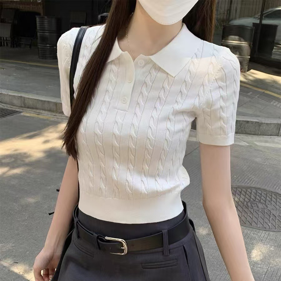 Оптовая продажа женских модных трикотажных рубашек-поло Raff RL War Horse с воротником-стойкой, корейская версия, приталенный крой, короткий рукав, 2025 г.