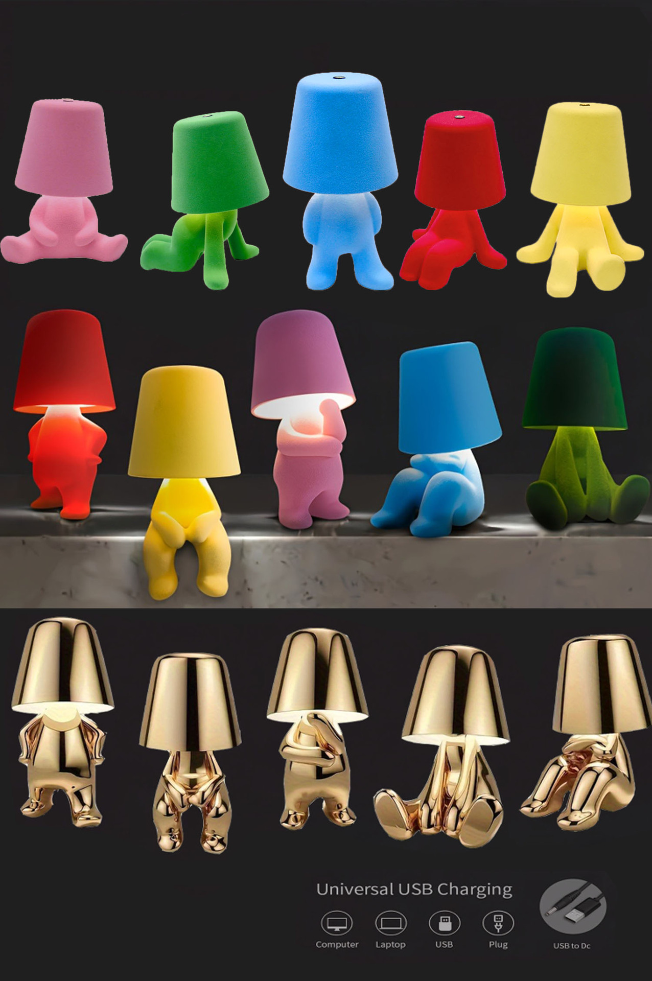 Прикроватная прикроватная сенсорная лампа управления, цветной пух маленький золотой человек золотой орнамент Thinker статуя LED стол