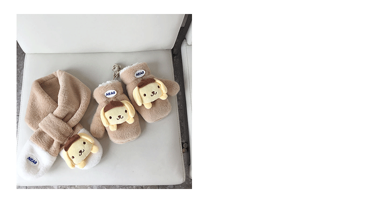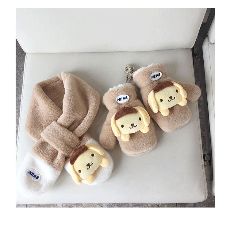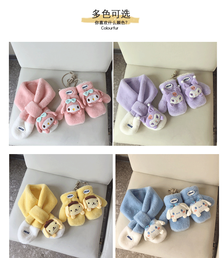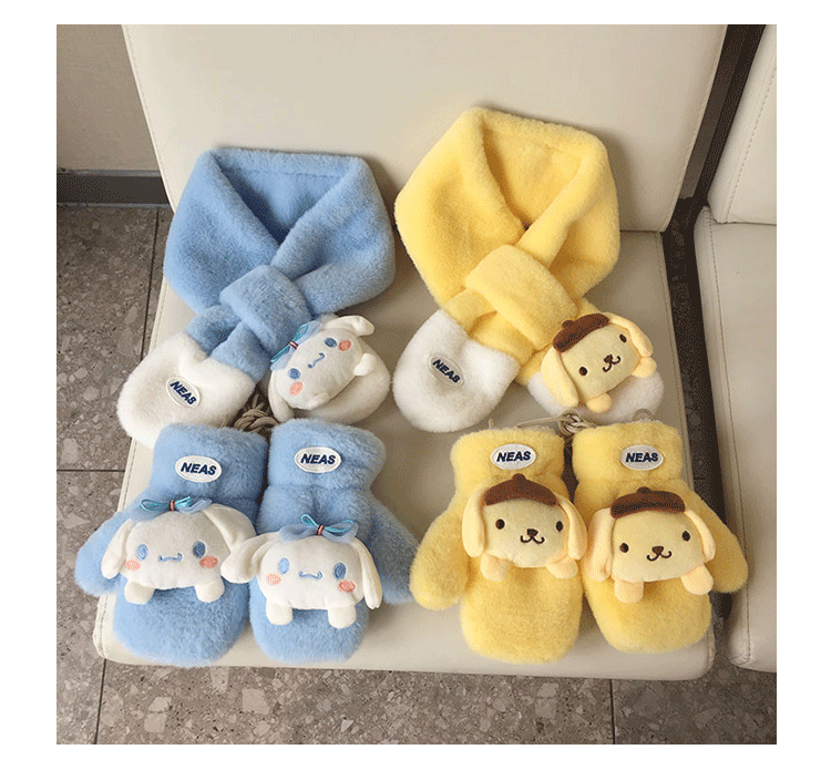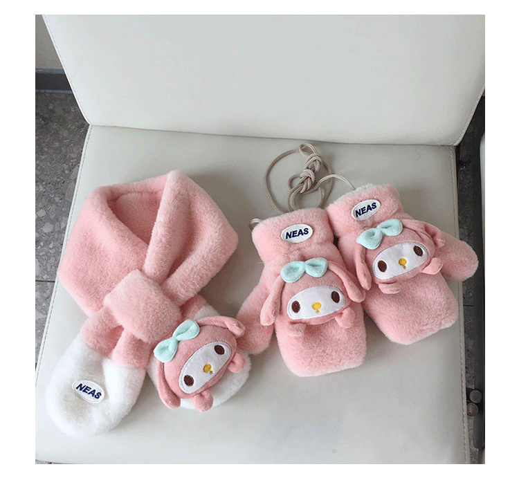 Осенние и зимние новые корейские маленькие этикетки милые мультяшные вышивки детские шарфы утолщенные теплые плюшевые перчатки детские нагрудники