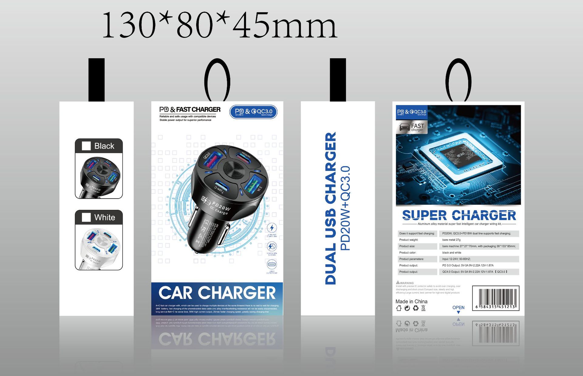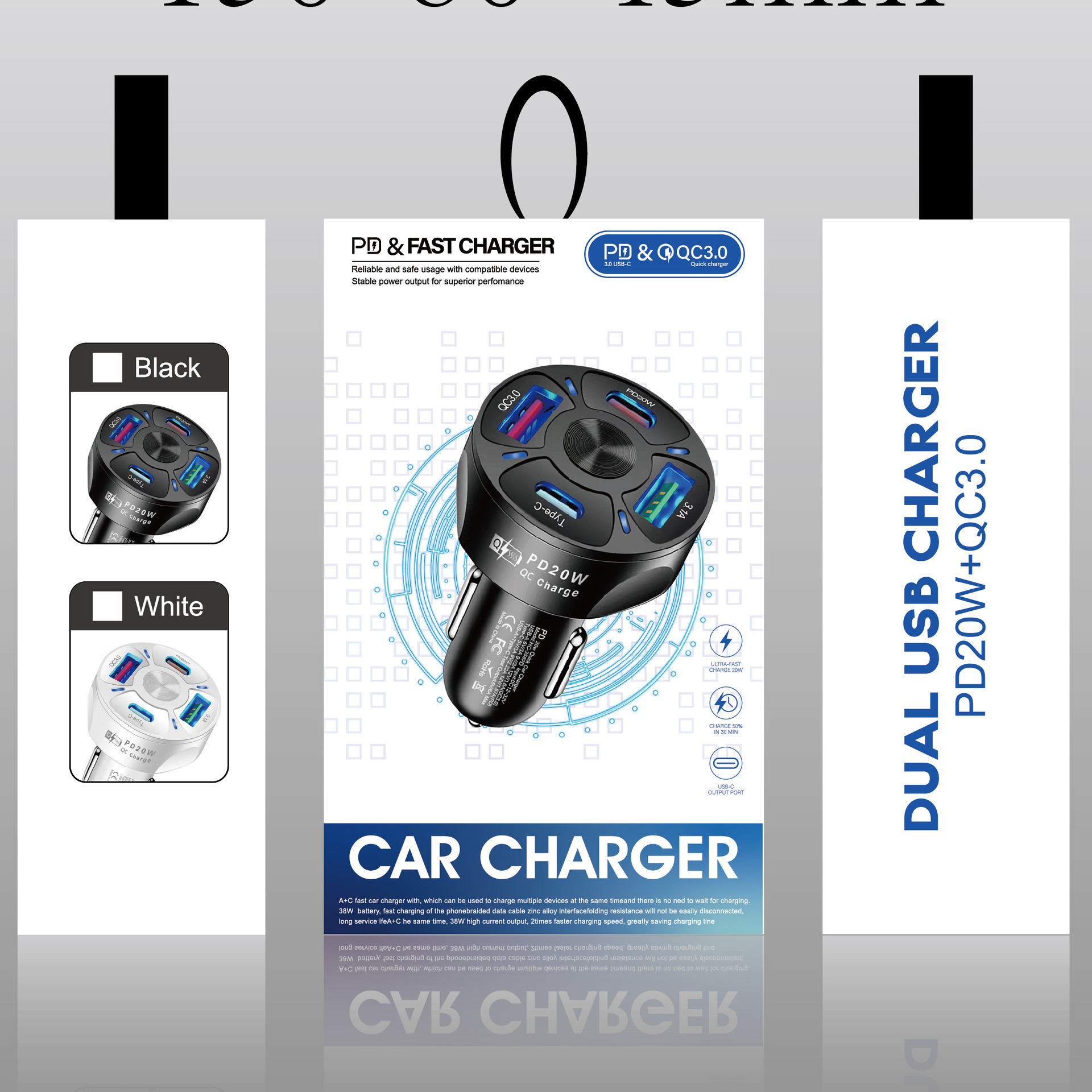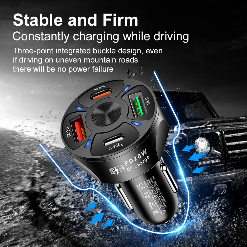Одна буксировка четыре 20WPD QC3.0 3.1A 2USB Type-c быстрозарядное автомобильное зарядное устройство