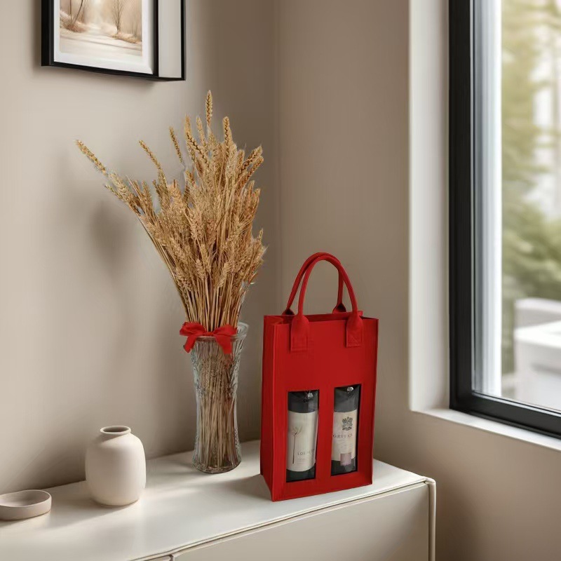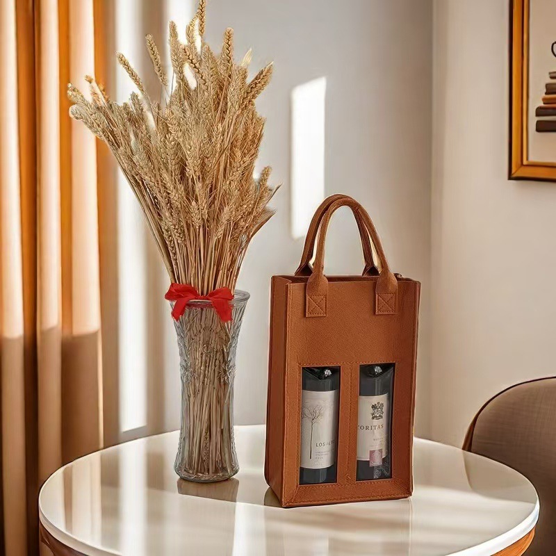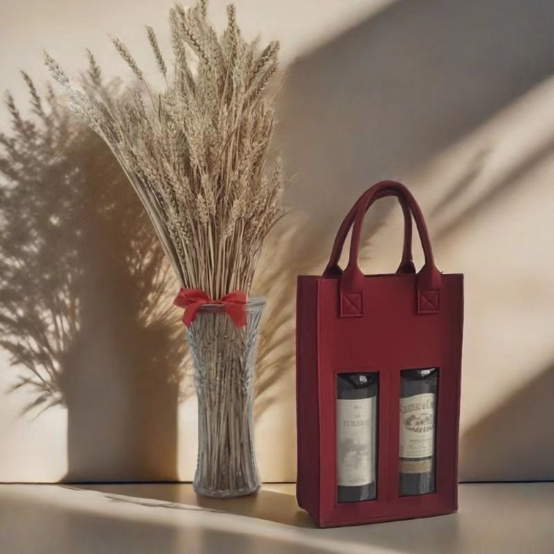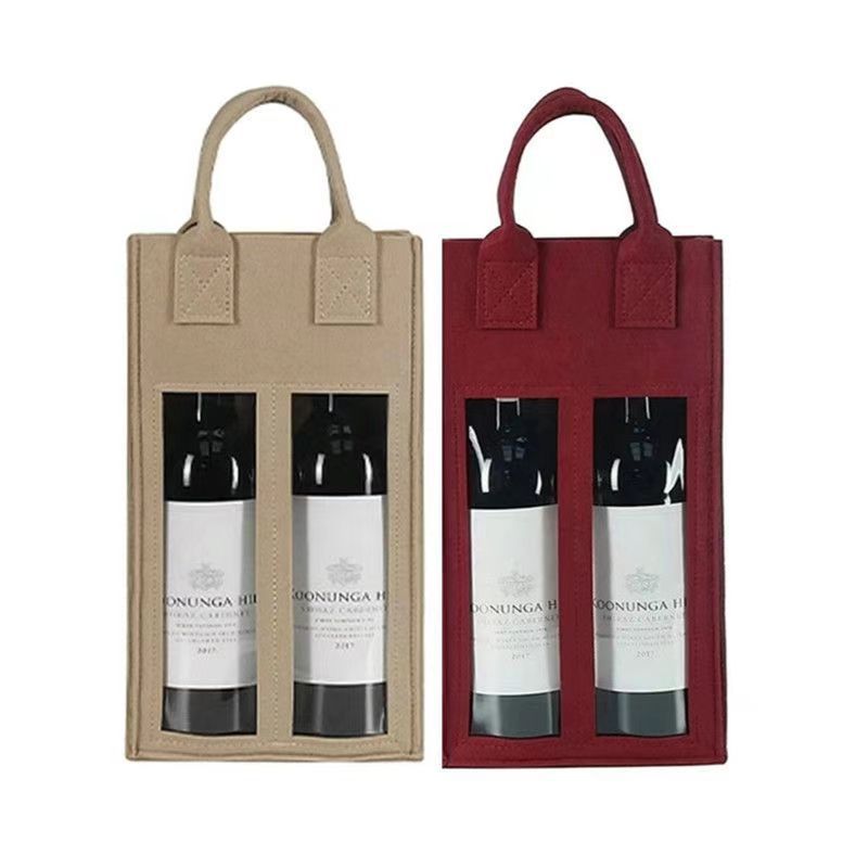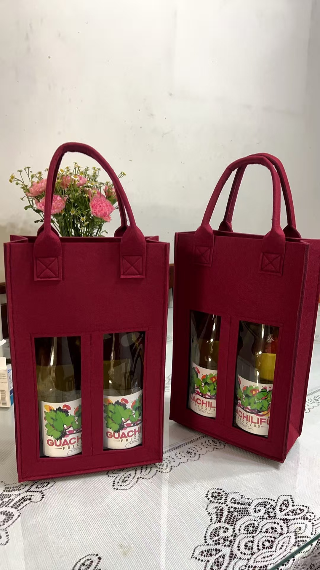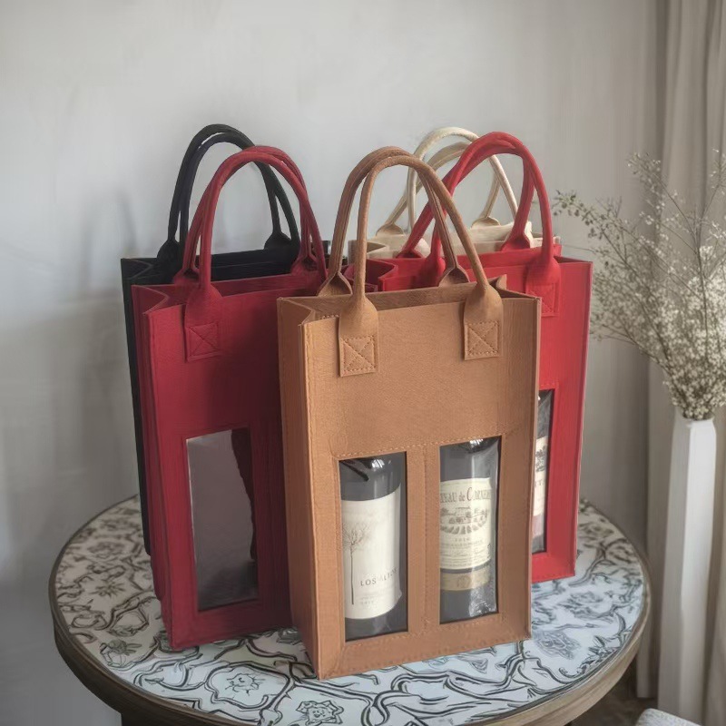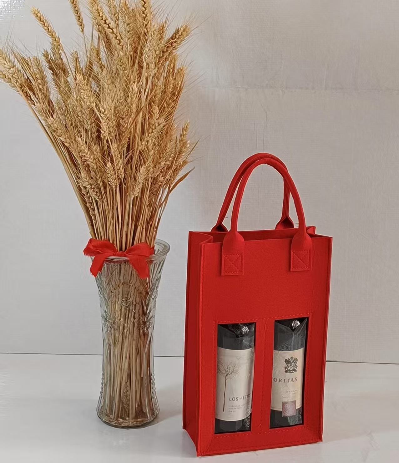 Готовая к использованию трансграничная сумка для вина из фетра, сумка-переноска на две бутылки, изысканная упаковка, подарочная сумка для вина с защитой от падений, оптом