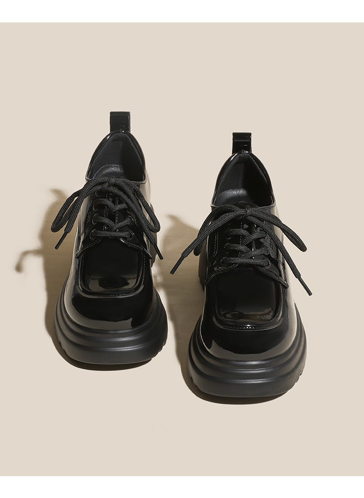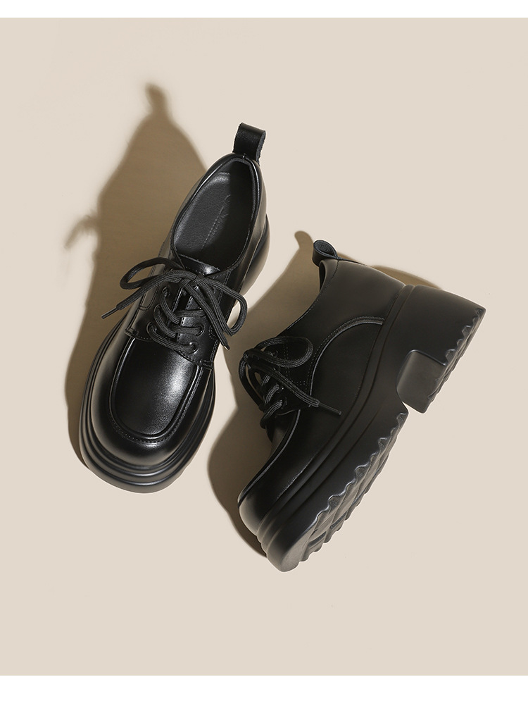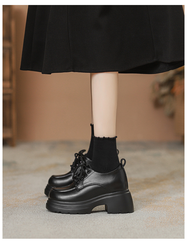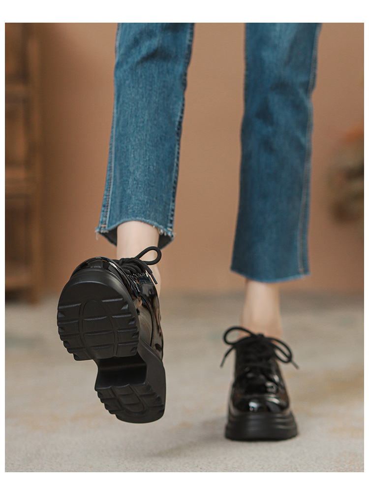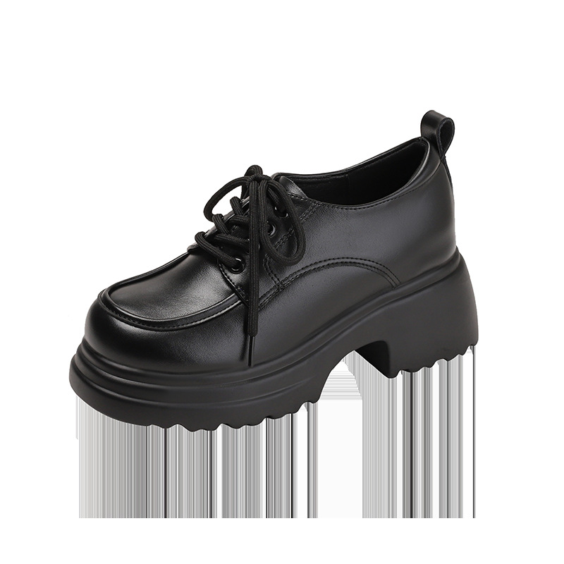 Внутренние высокие маленькие кожаные туфли женские 2024 новые кексы туфли на толстой подошве Lefu туфли на толстом каблуке с ремешком 8,5 CM