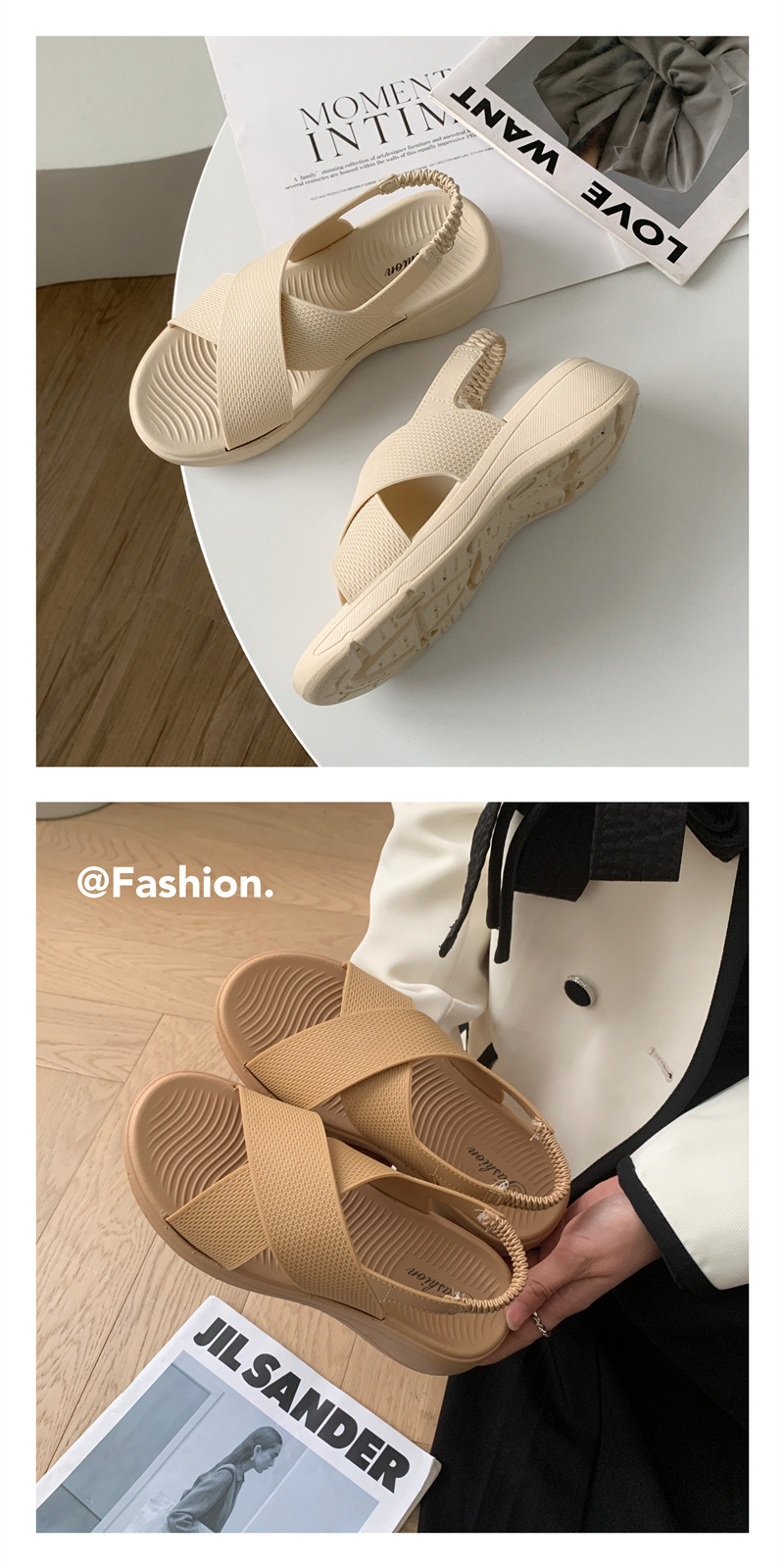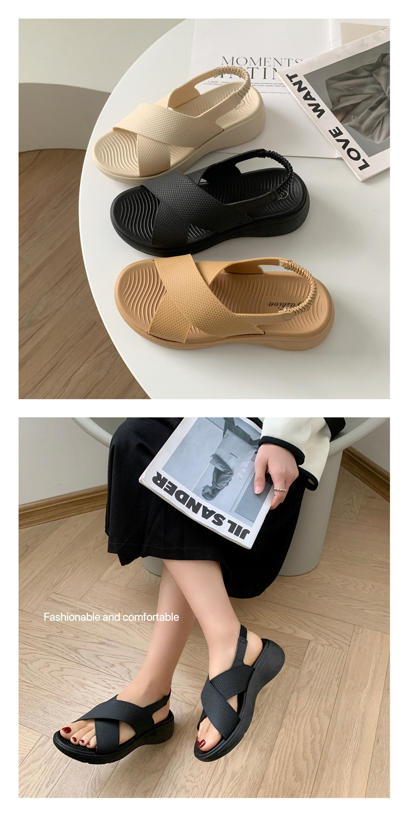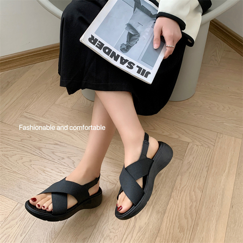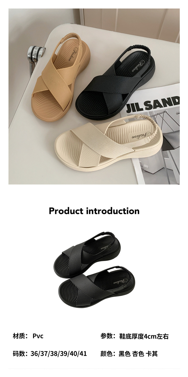 Новый сплошной цвет эластина летняя женская одежда повседневная женская обувь на толстой подошве модная пляжная сандалия трансграничная оптовая продажа