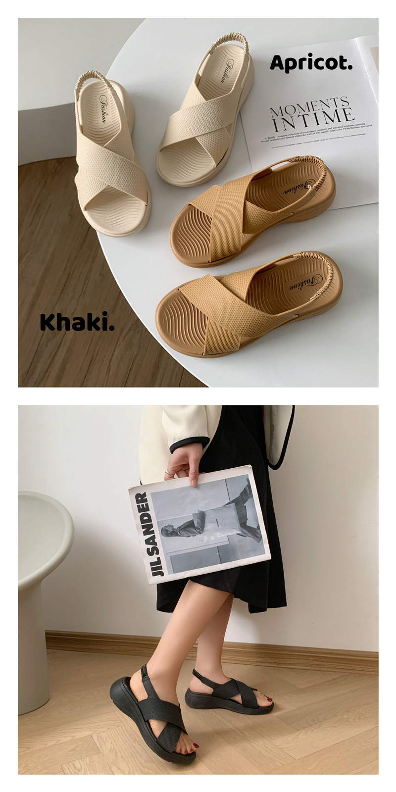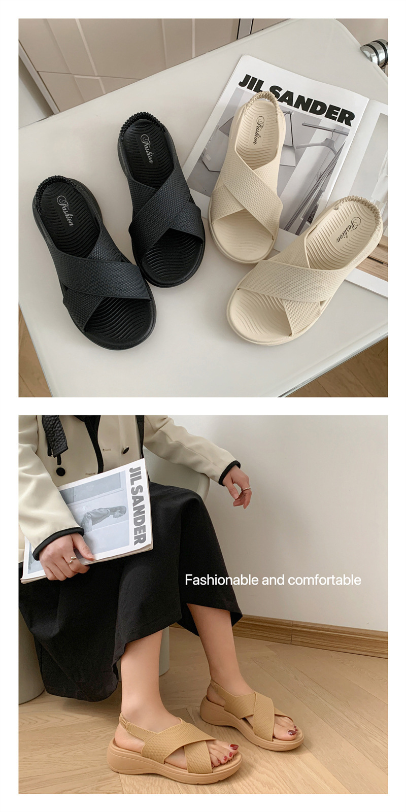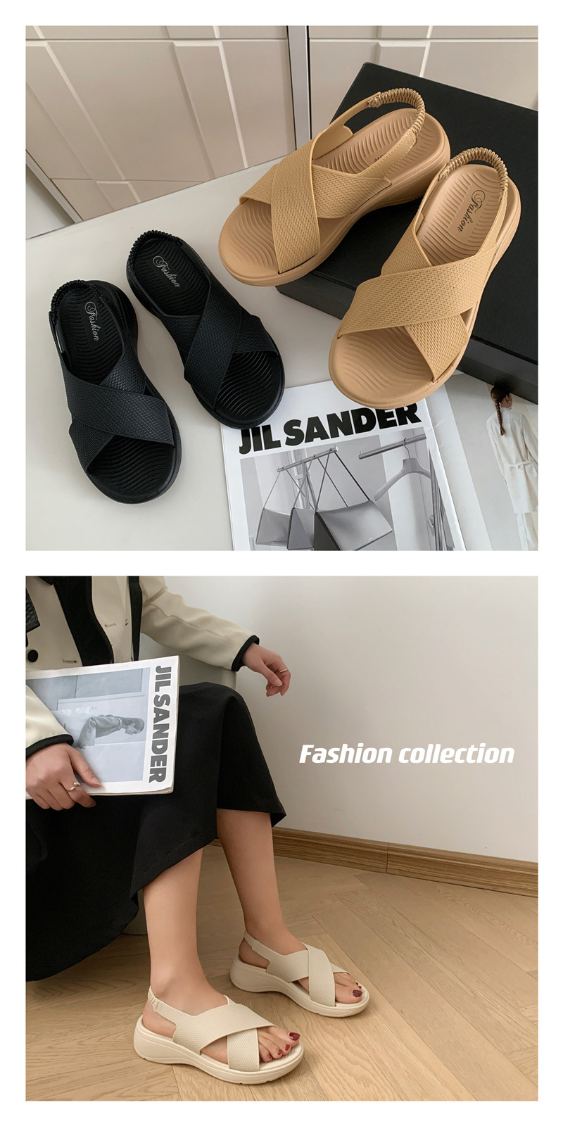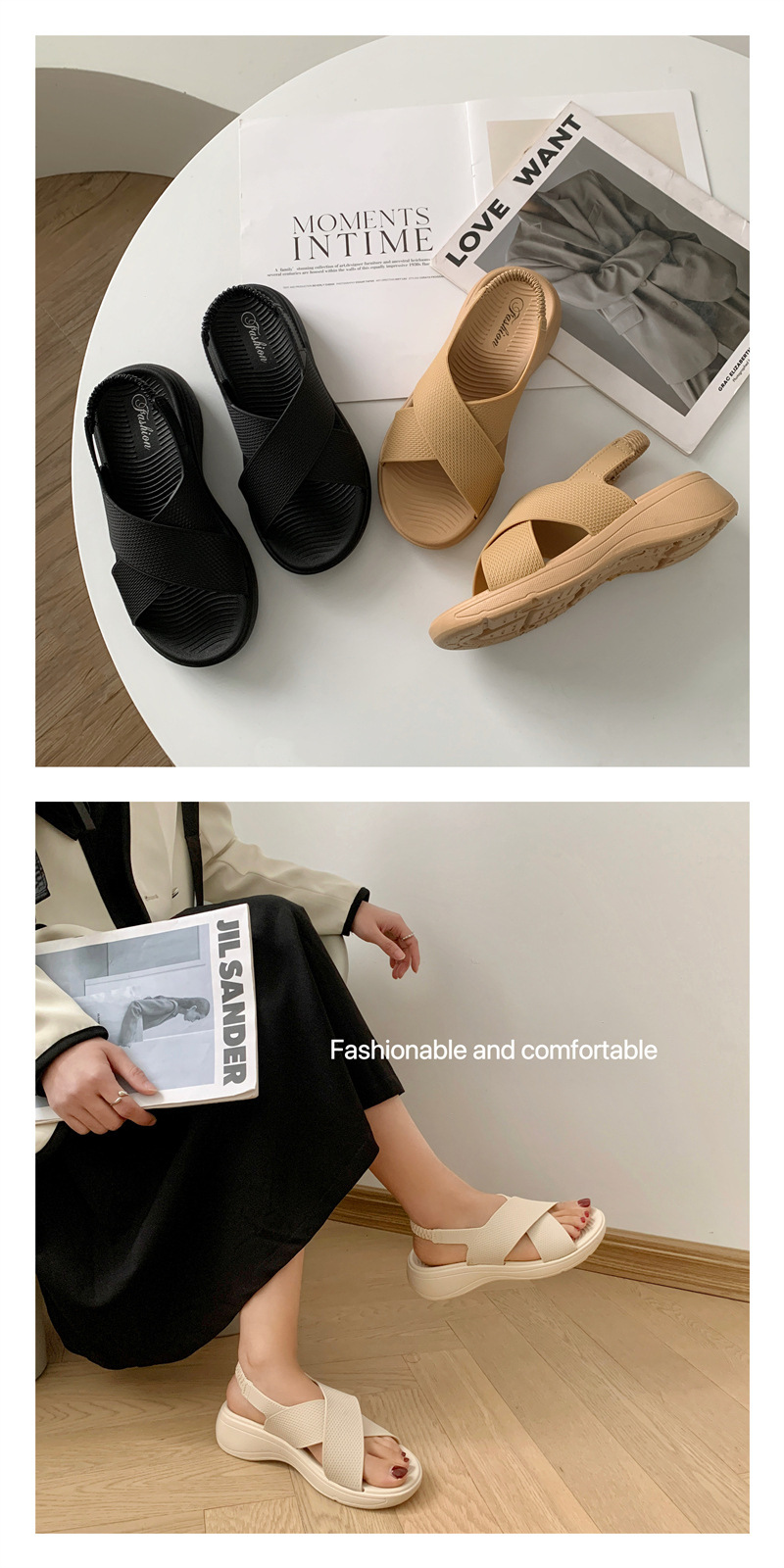 Новый сплошной цвет эластина летняя женская одежда повседневная женская обувь на толстой подошве модная пляжная сандалия трансграничная оптовая продажа