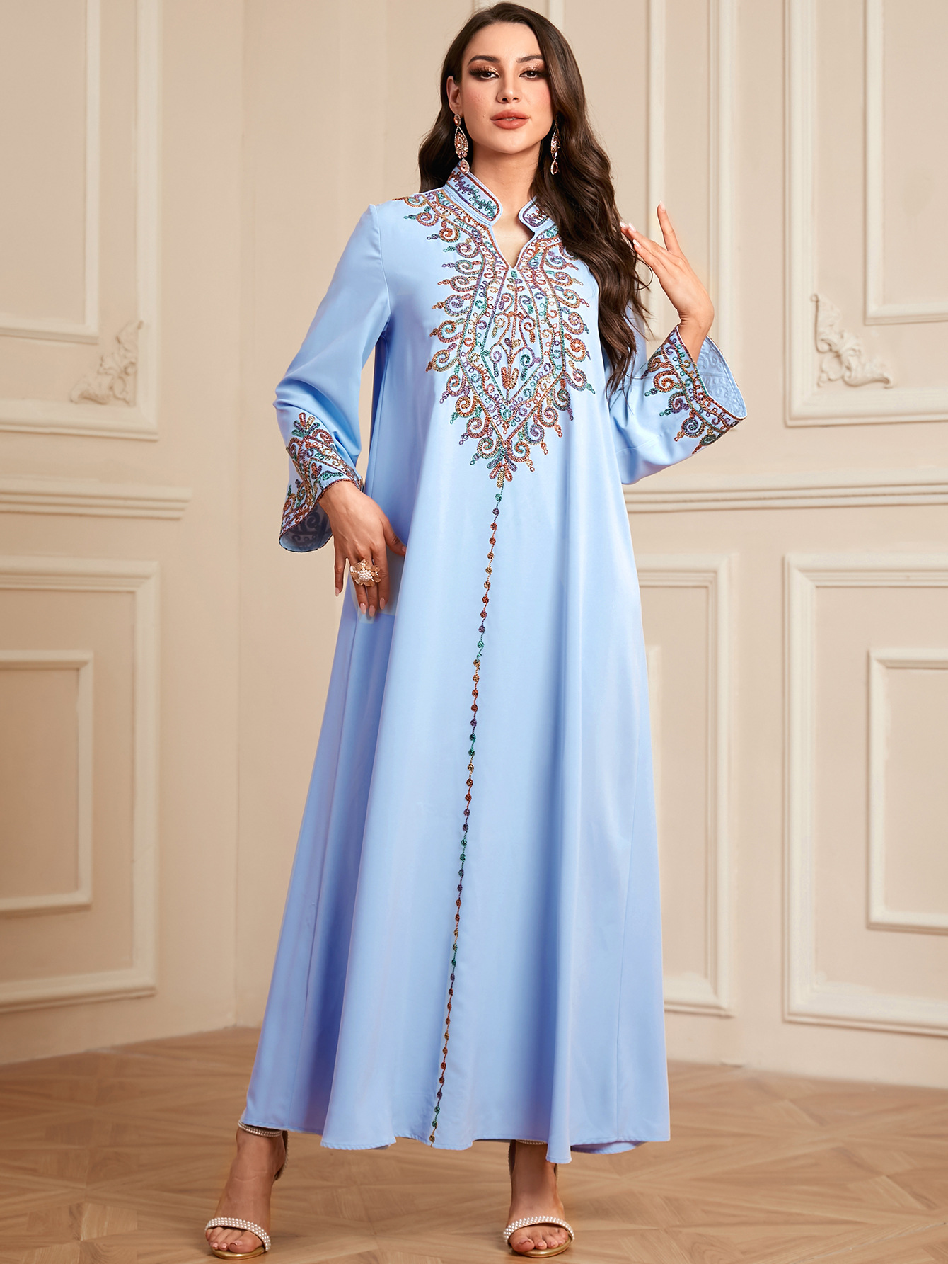 4065 Ближневосточный трансграничный халат Мусульманское платье с V-образным вырезом с вышивкой арабское платье Dubai jalabiya