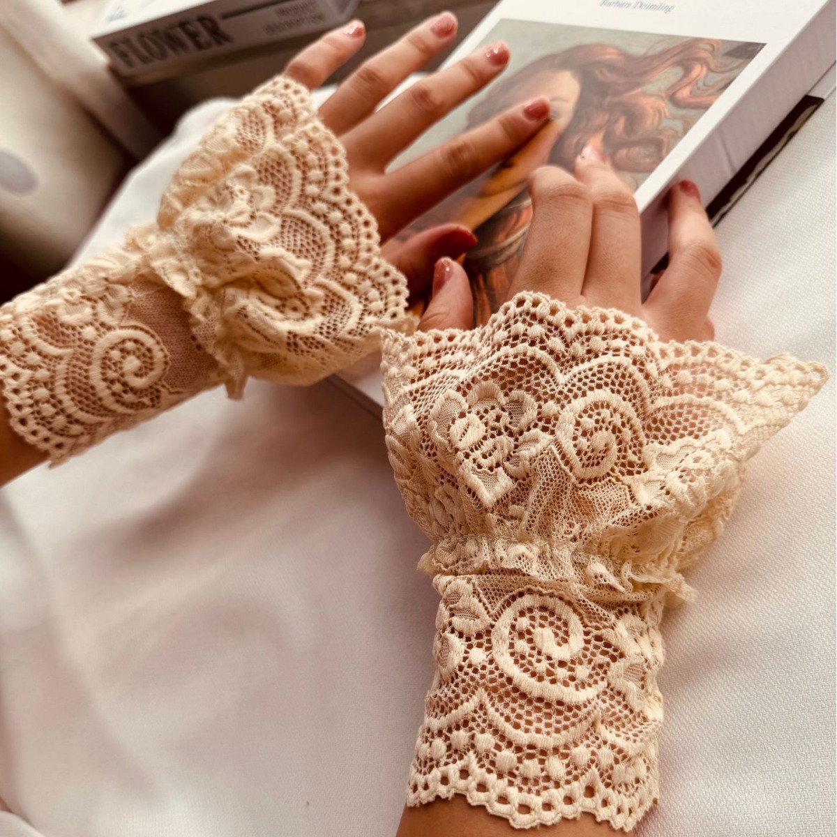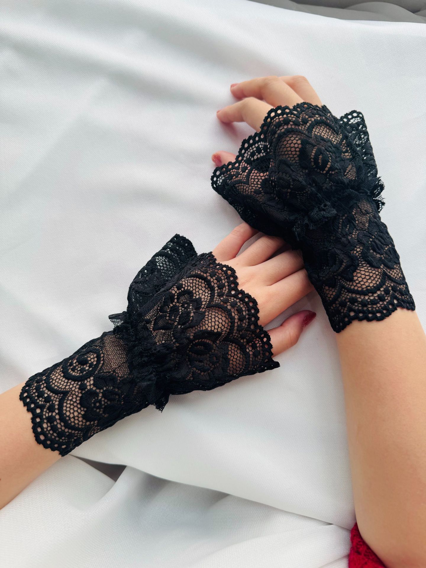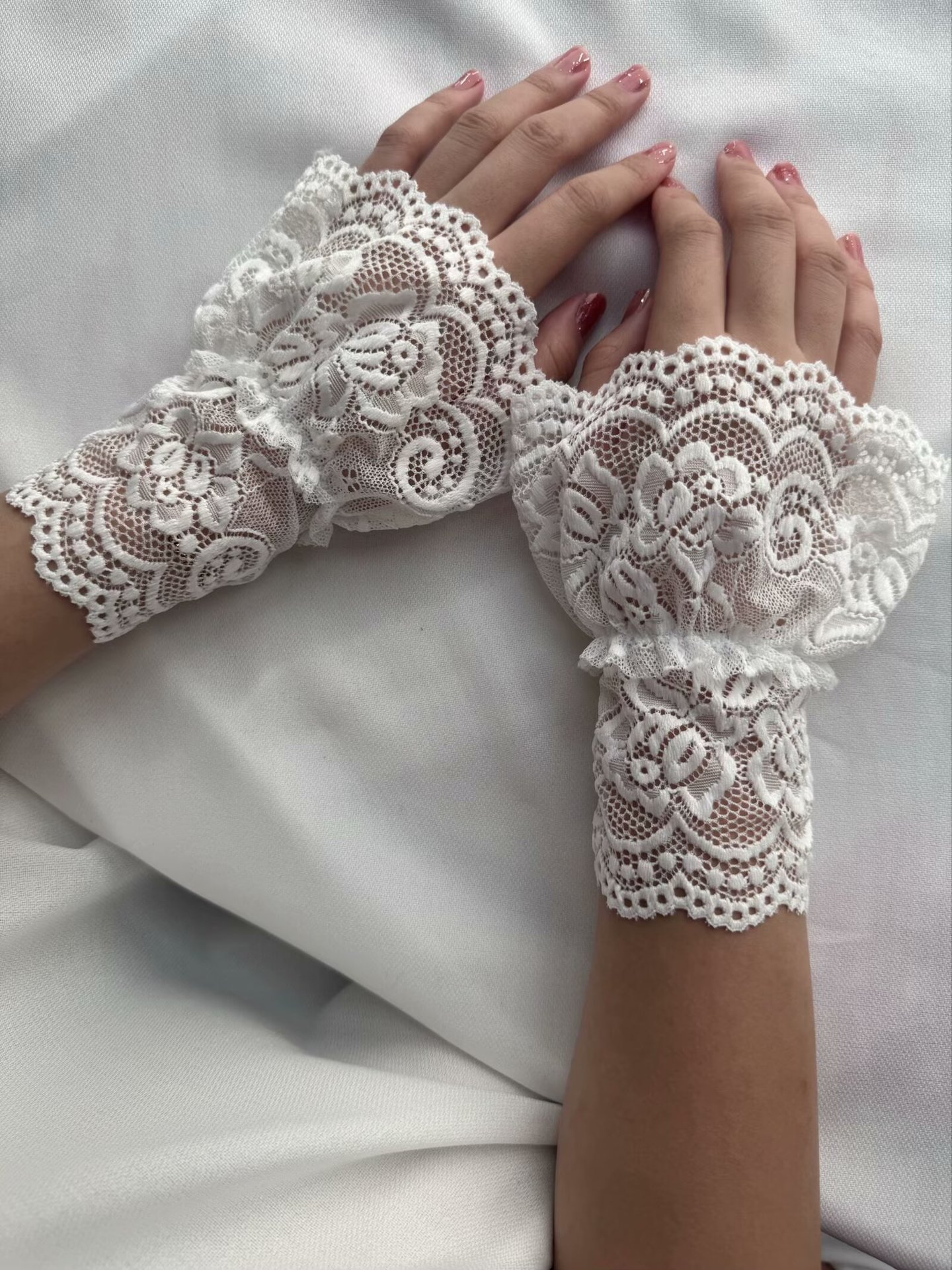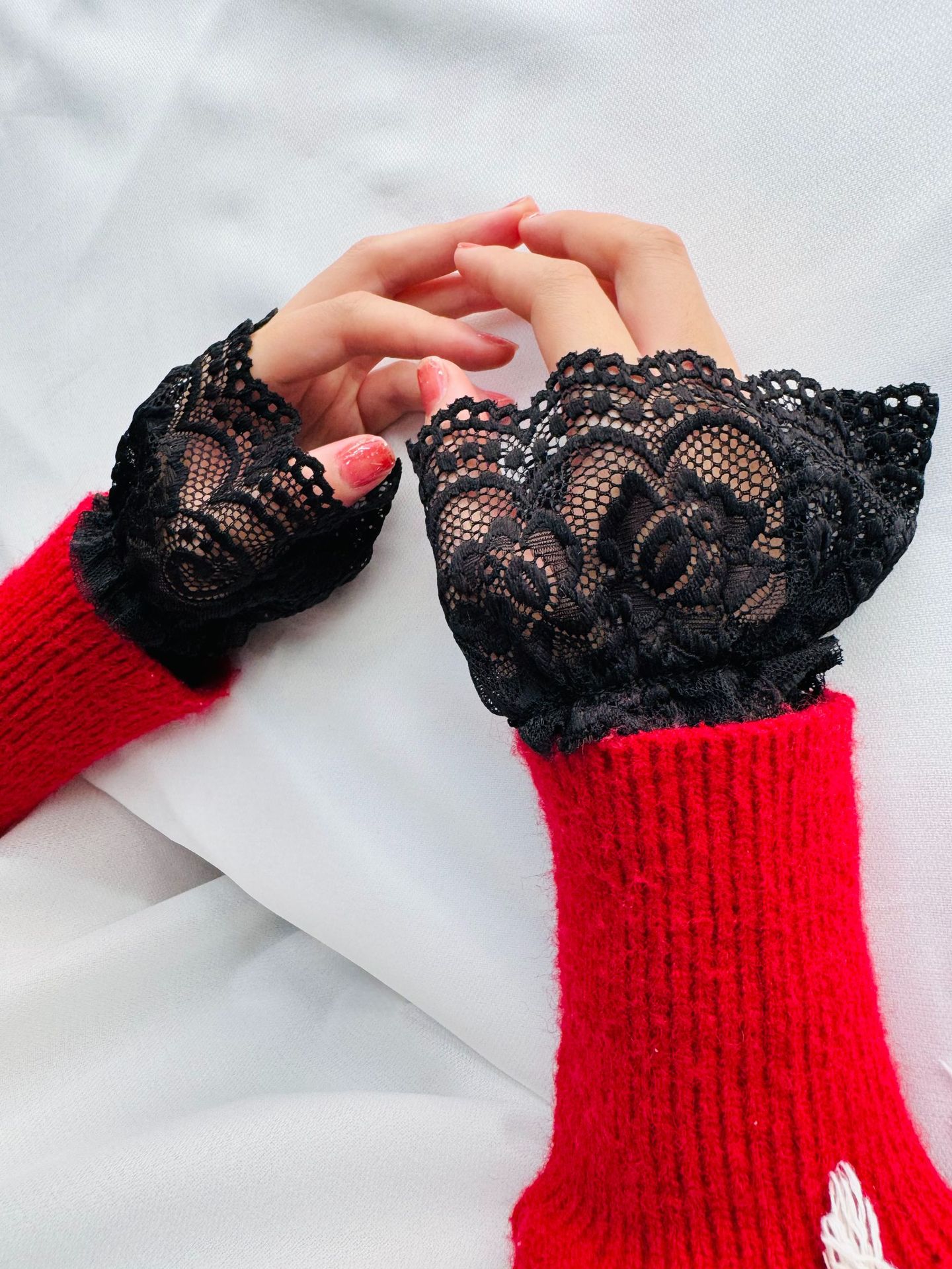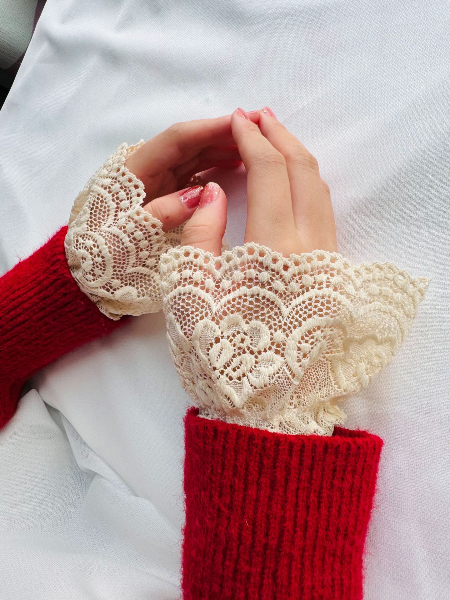 Новая сетчатая пряжа кружева с полыми крючками с поддельными рукавами для женщин