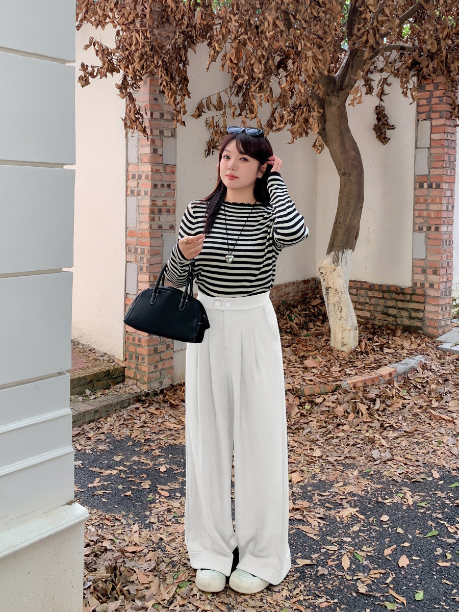 前襟褶皱感设计,视觉上线条修饰腿型,两侧有口袋,