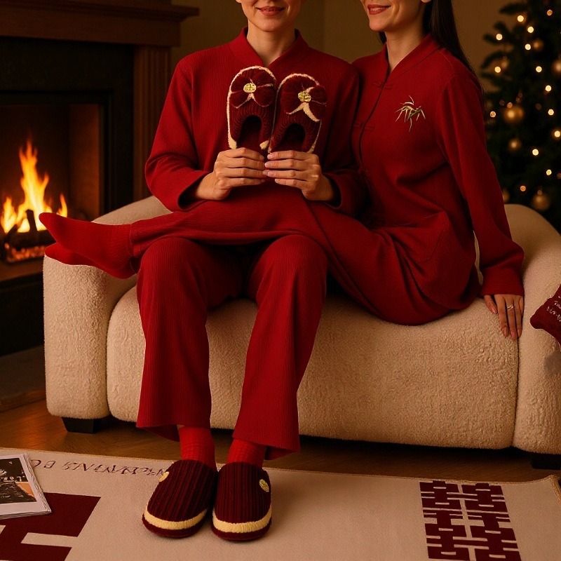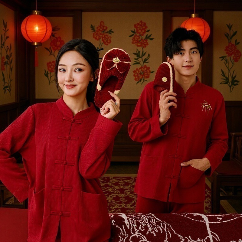 Зимние свадебные тапочки пара теплая и праздничная красная пара в помещении