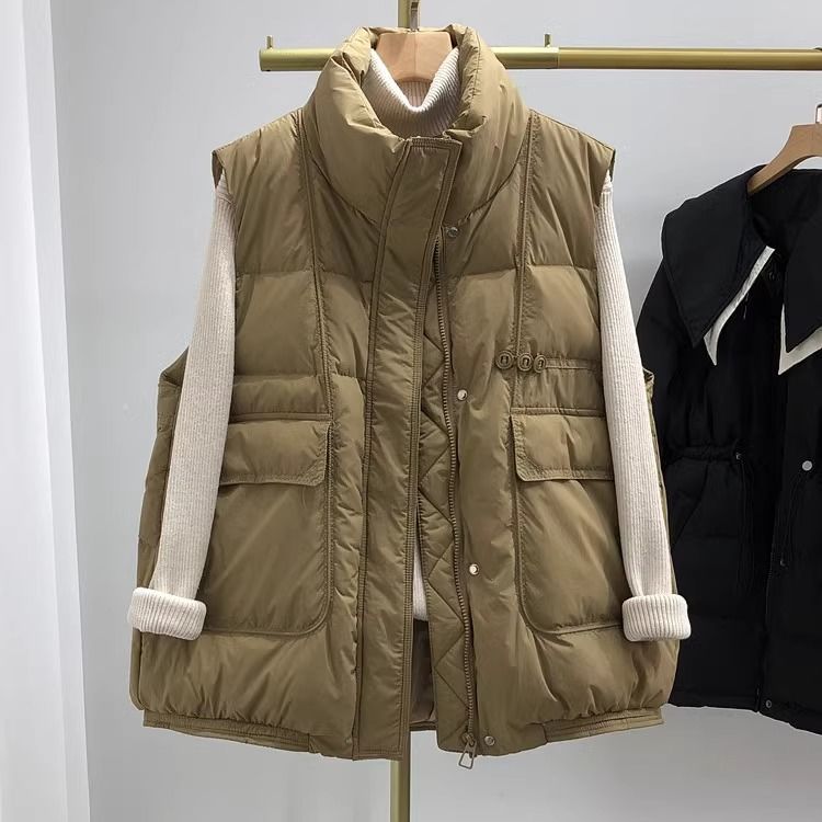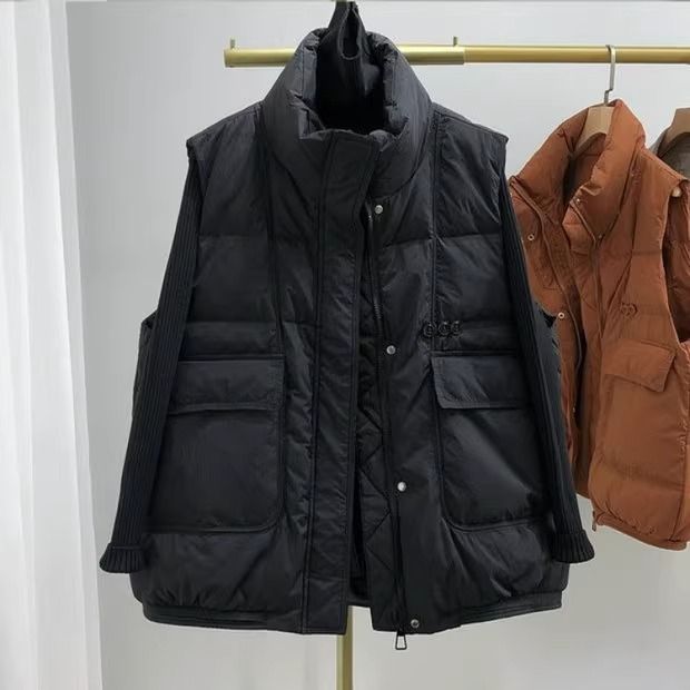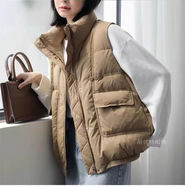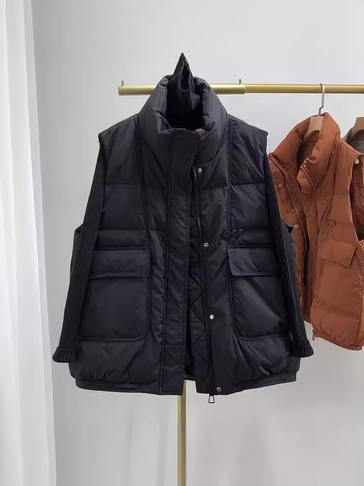 Свободный модный однотонный воротник-стойка, простой универсальный женский хлопковый жилет в корейском стиле на осень 2024 года.