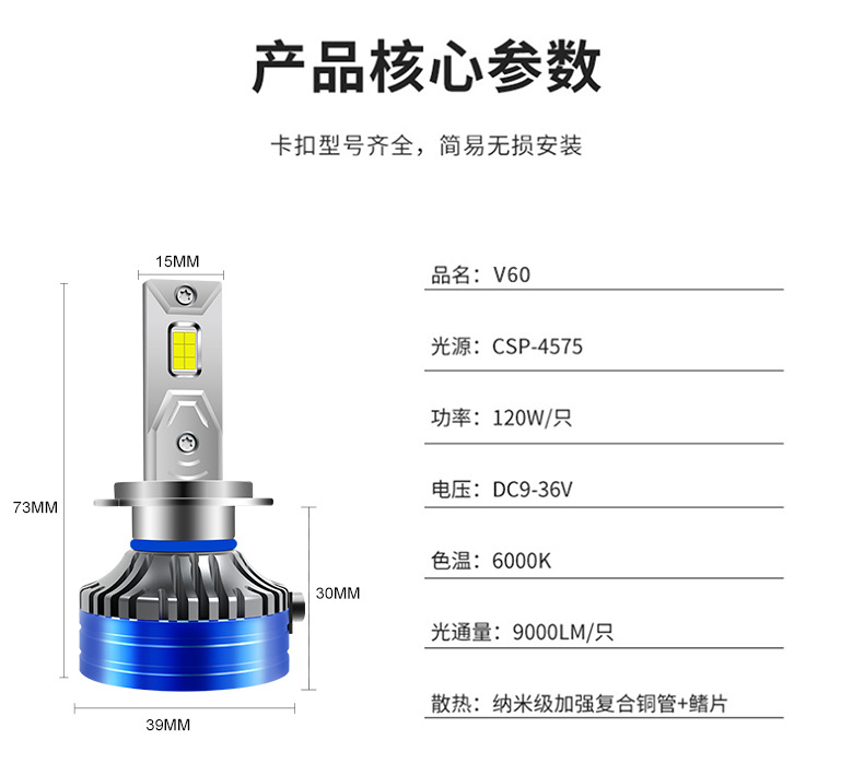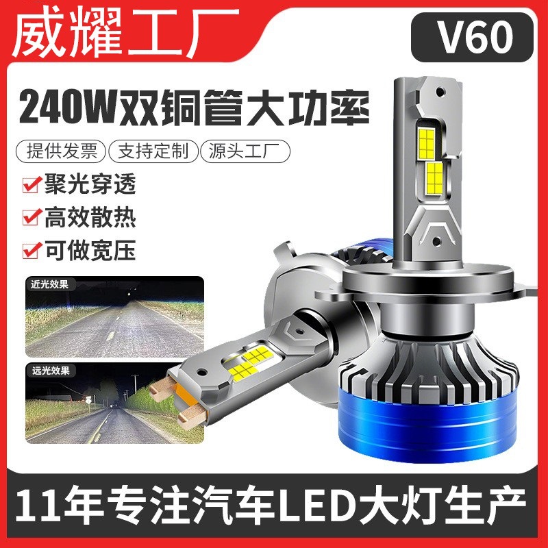 Оптовая продажа 120 Вт высокая мощность автомобильные светодиодные фары h4 двойная медная трубка h7 лазер v60 модификация лампы фары трансграничная