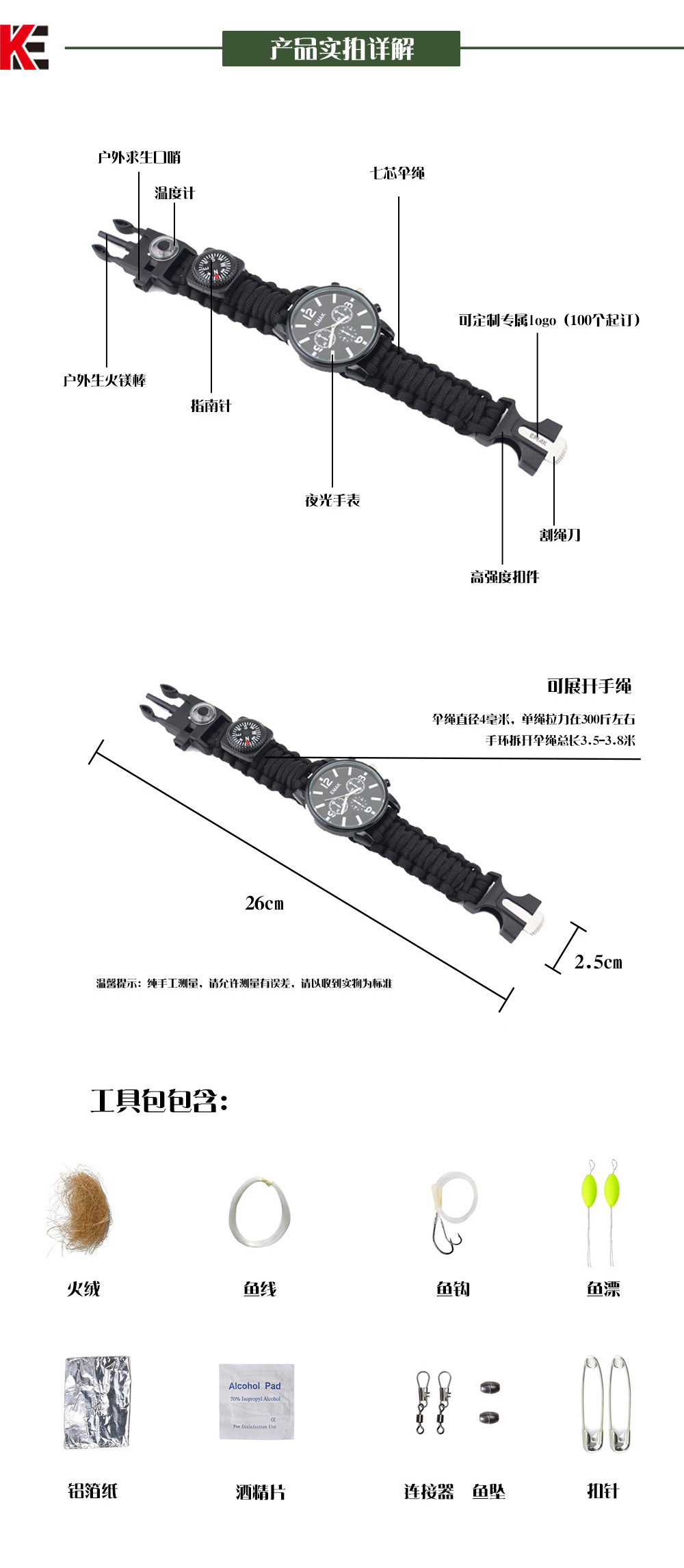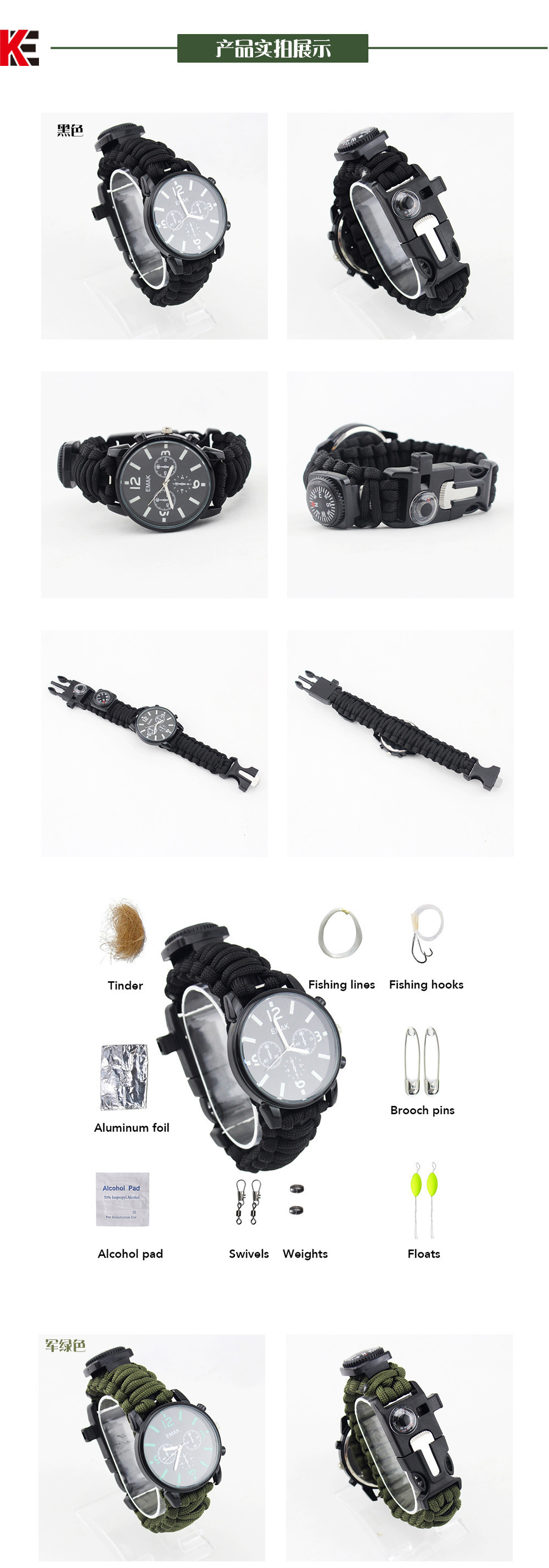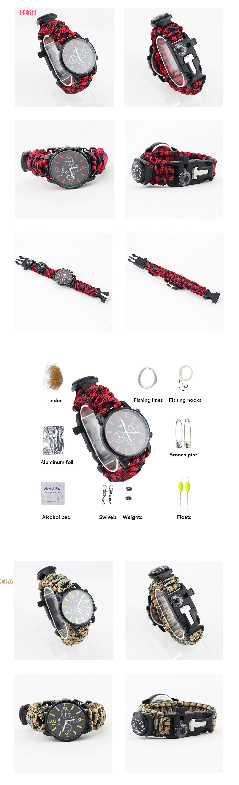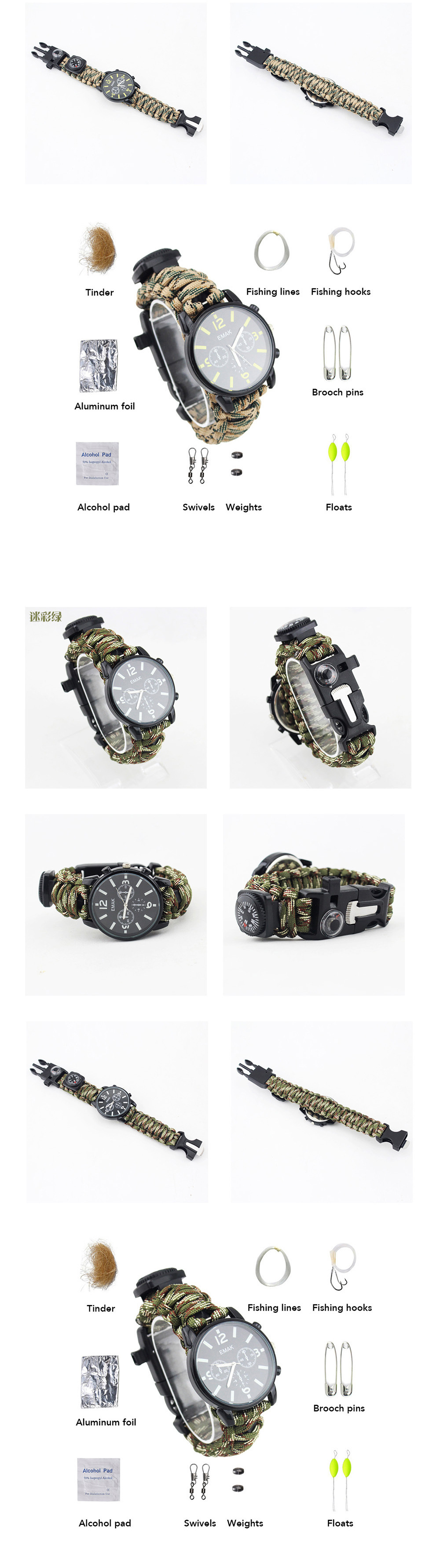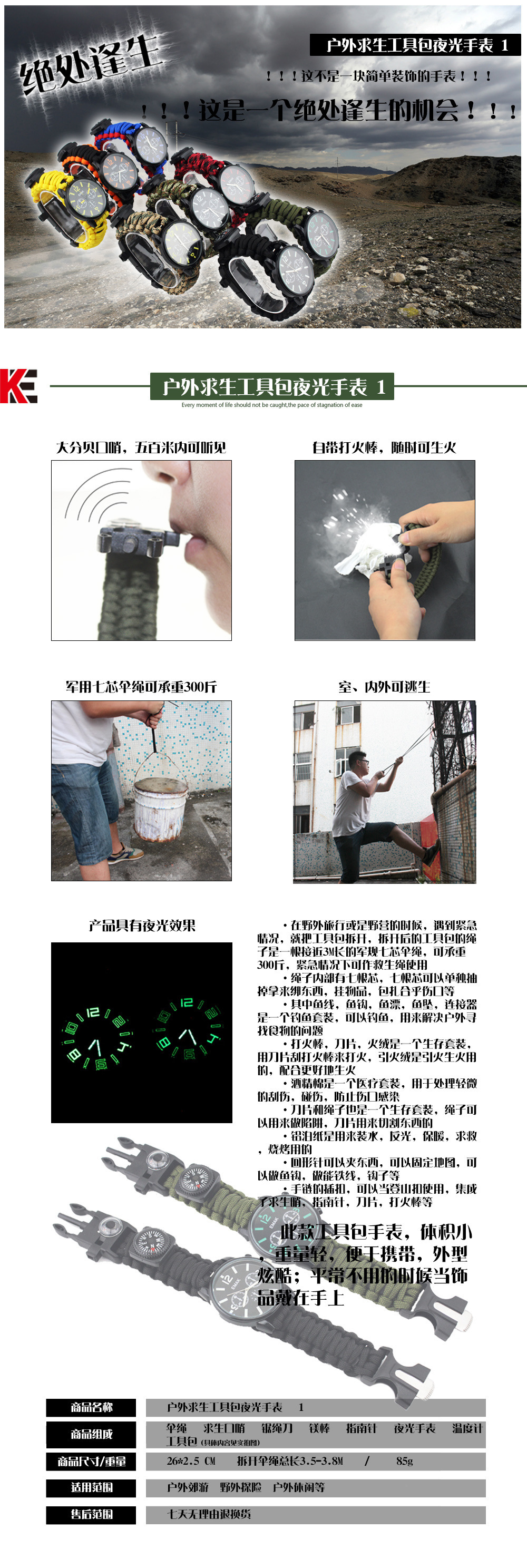Наручные часы для скалолазания на открытом воздухе с подсветкой, часы для выживания в дикой природе, набор инструментов для кемпинга и альпинизма, спасательный набор инструментов с часами