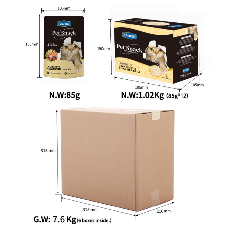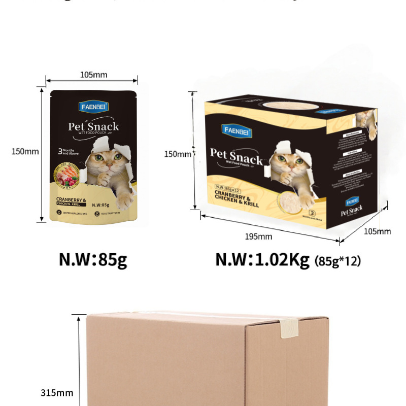 Влажный корм для кошек FAENBEI, пакетик с лакомствами, увлажняющий питательный корм, английская трансграничная оптовая коробка