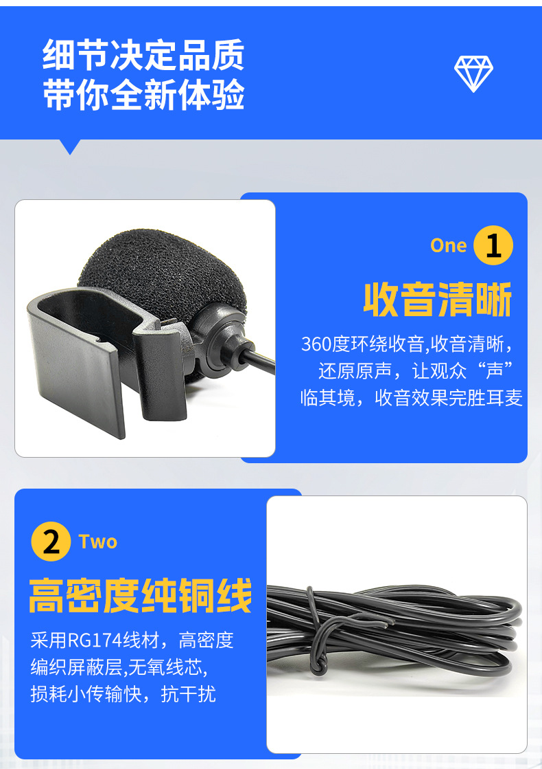 2m Автомобильный петличный микрофон; 3m Автомобильный петличный микрофон