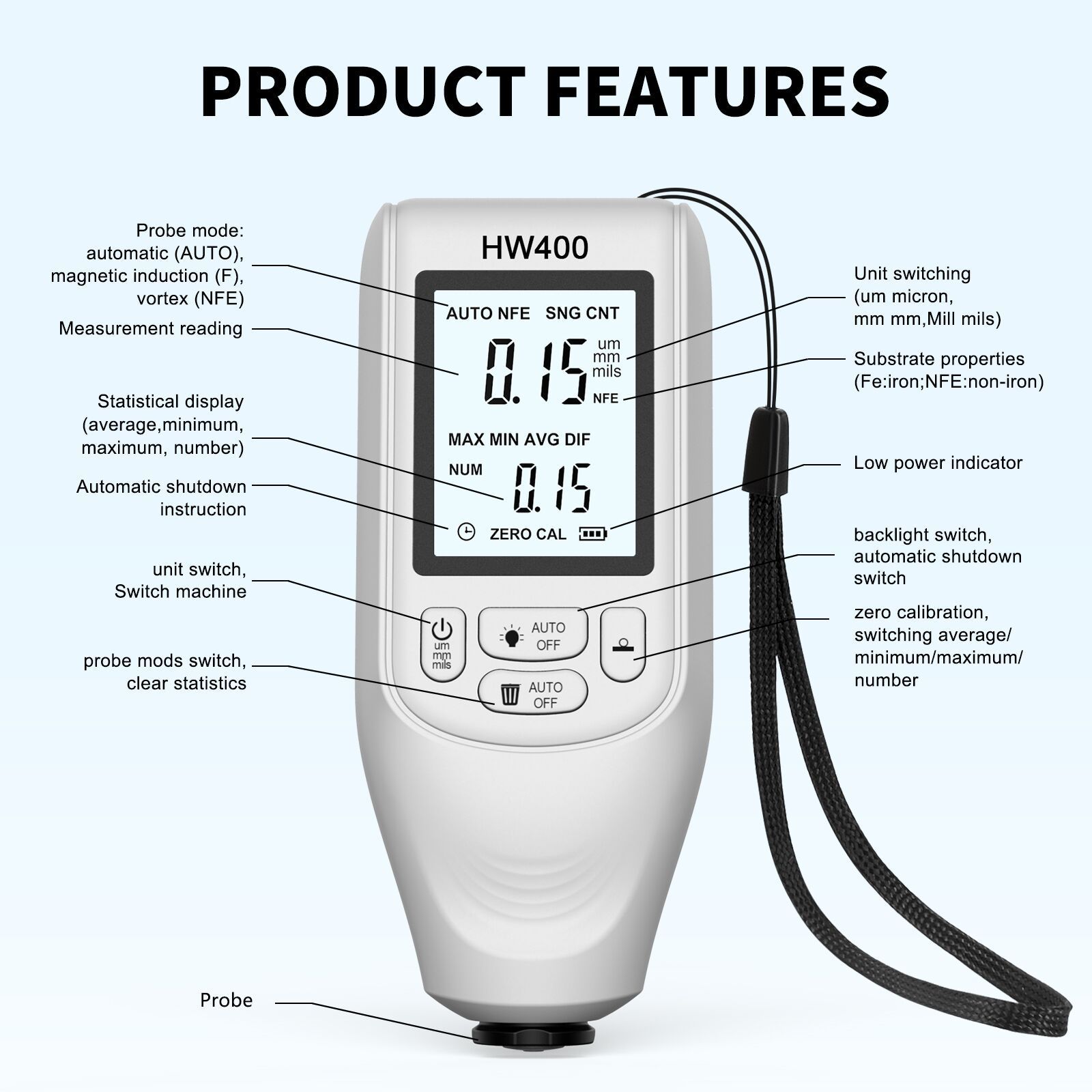 Новый толщиномер Высокоточный промышленный железо-алюминиевое покрытие толщиномер автомобильная краска толщиномер HW-400 слой краски через границу