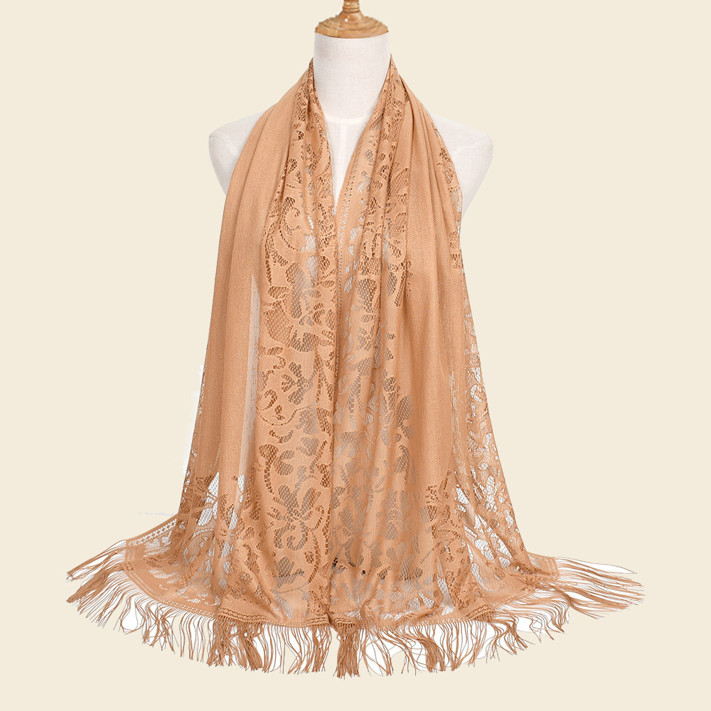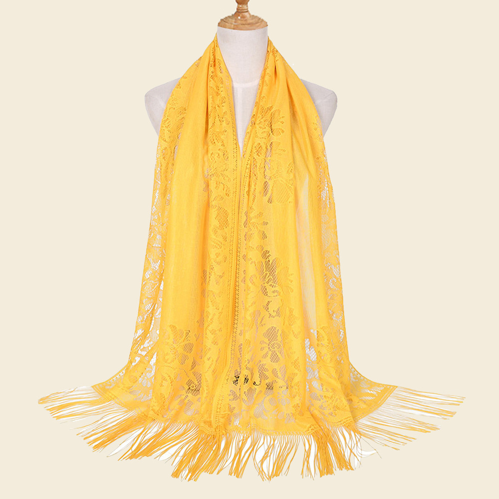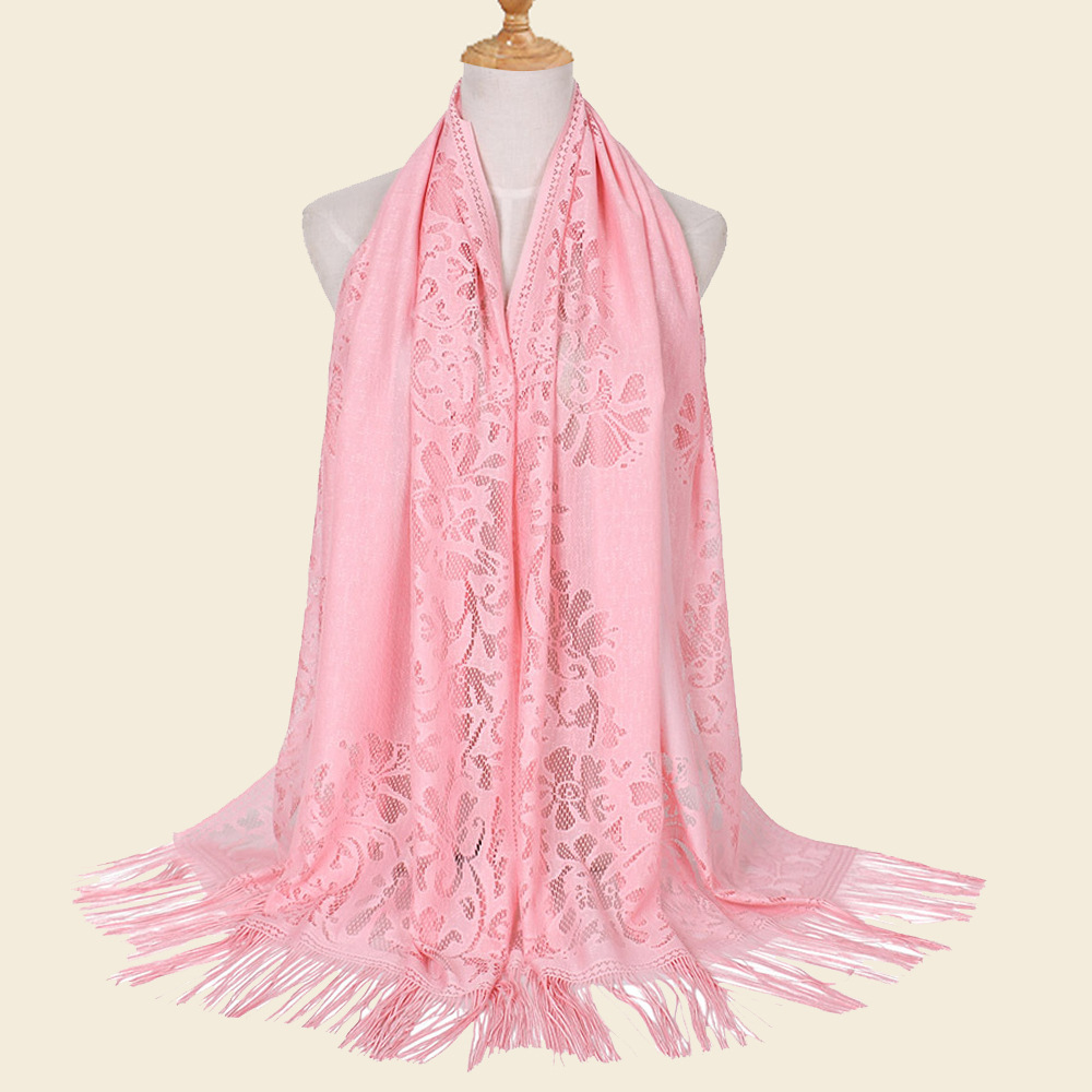 Трансграничный новый летний малазийский сплошной цвет кружева с полыми кисточками длинная марля платок шарф хиджаб женский
