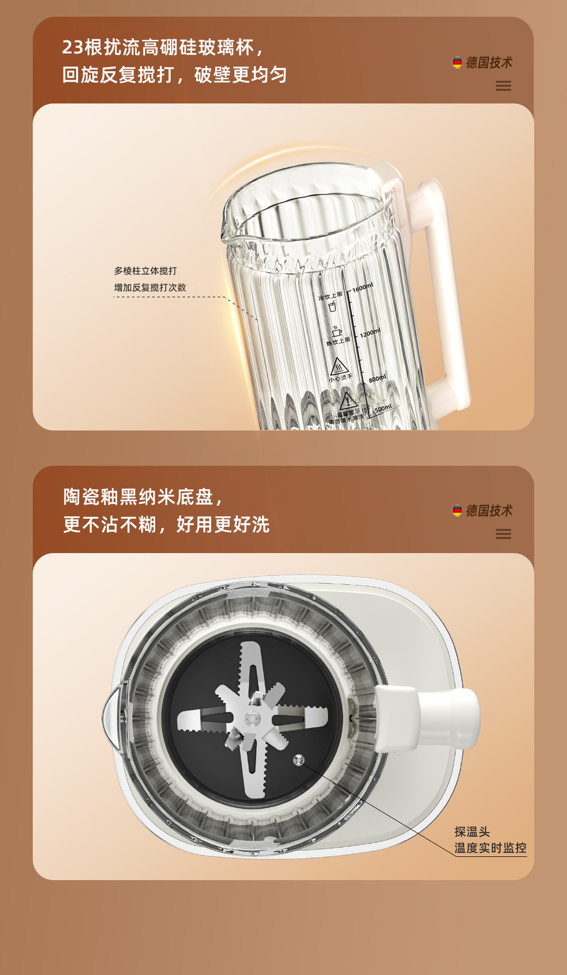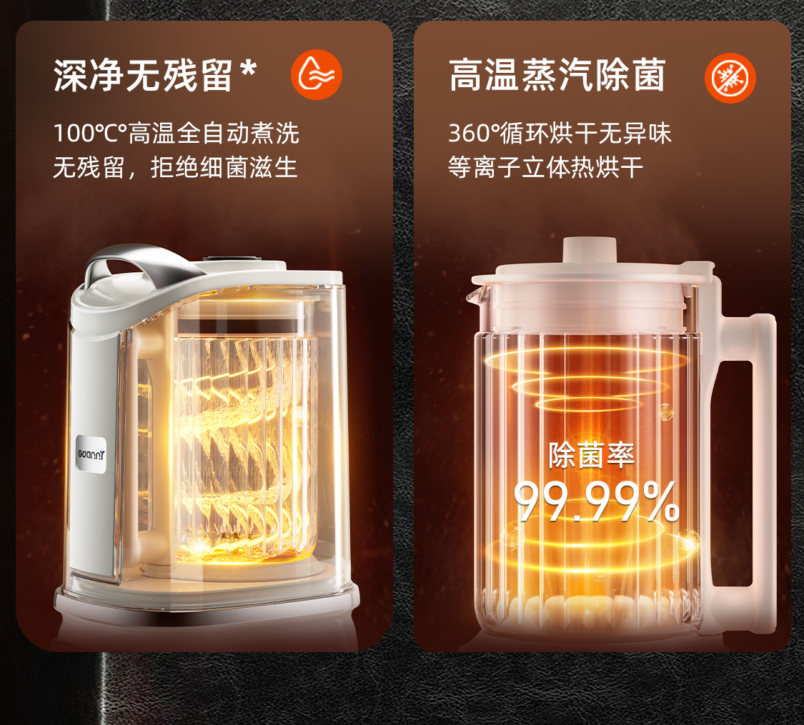Разрыв стен без фильтрации; Горячая сушка и стерилизация; Без ручной стирки; Трехмерный равномерный нагрев