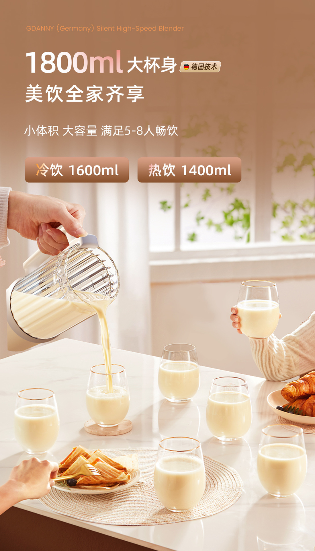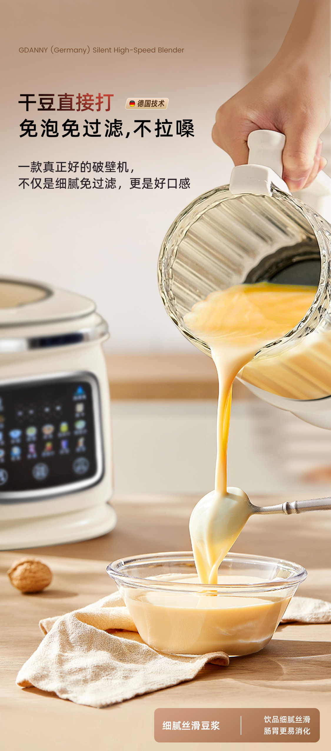 Немецкий импортный блендер для домашнего использования, полностью автоматический и бесшумный, новая модель 2026 года, для приготовления соевого молока, многофункциональная соковыжималка без остатка продуктов.