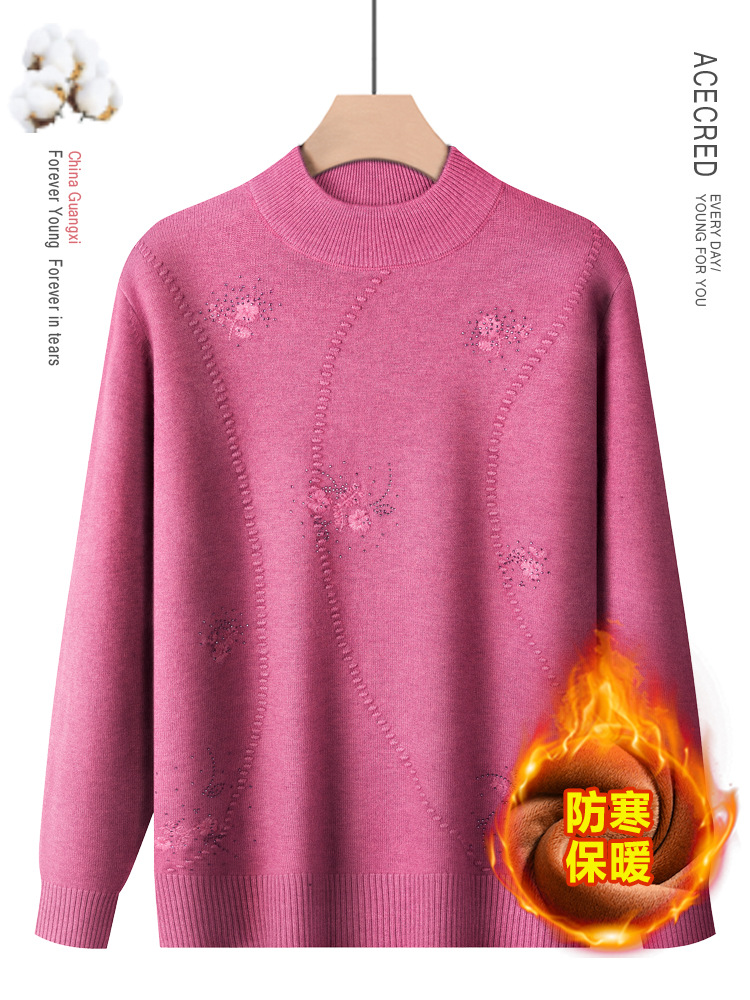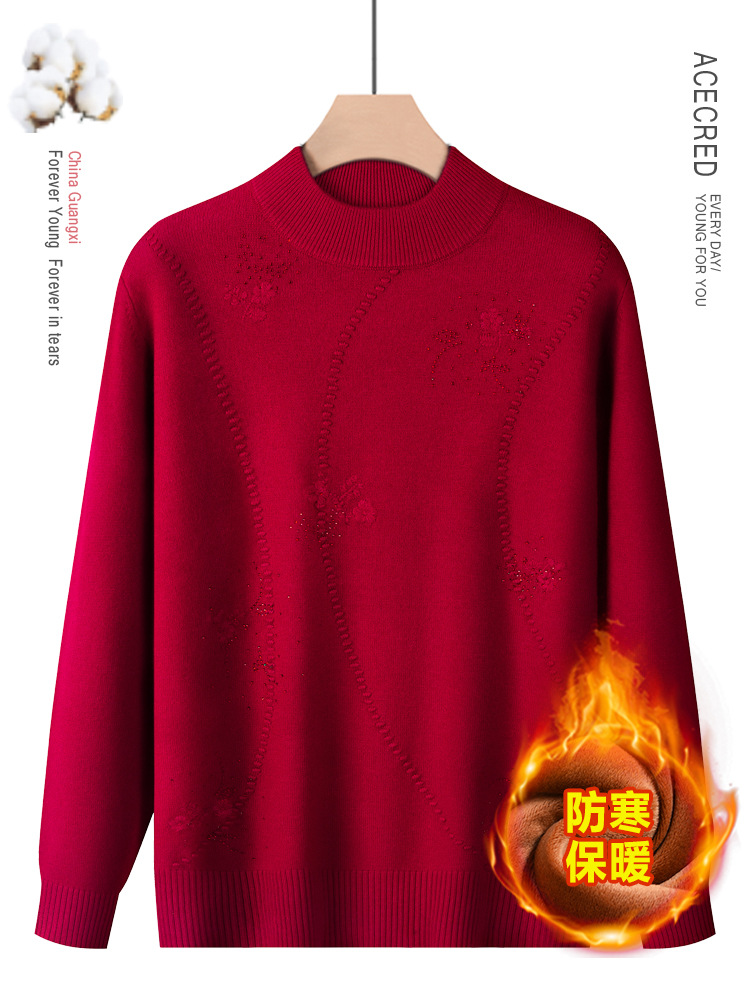 Свитер-пуловер для женщин среднего возраста и пожилых, осенне-зимний, повседневный, с круглым вырезом, вязаный, однотонный, с вышивкой, базовая одежда для мам