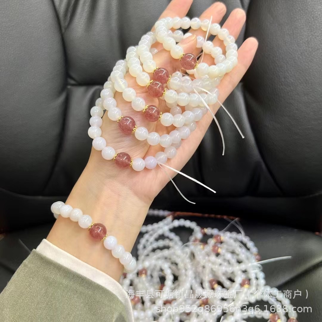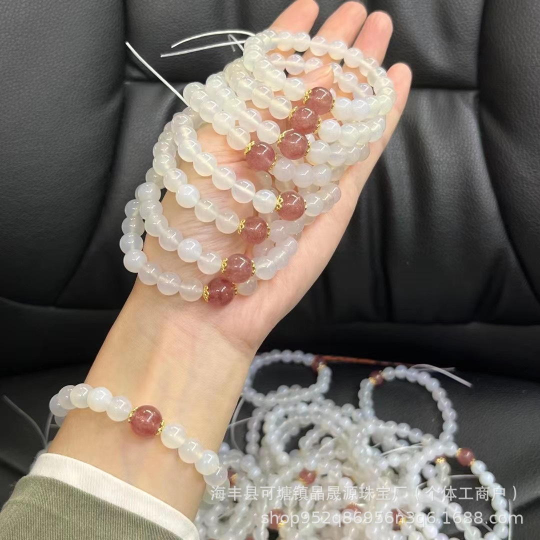 天然荔枝冻白色玛瑙手链女搭配草莓晶单珠夏天时尚简约手串直播款 批发量越大价格越低,可供直播间长期合作,欢迎来电私聊