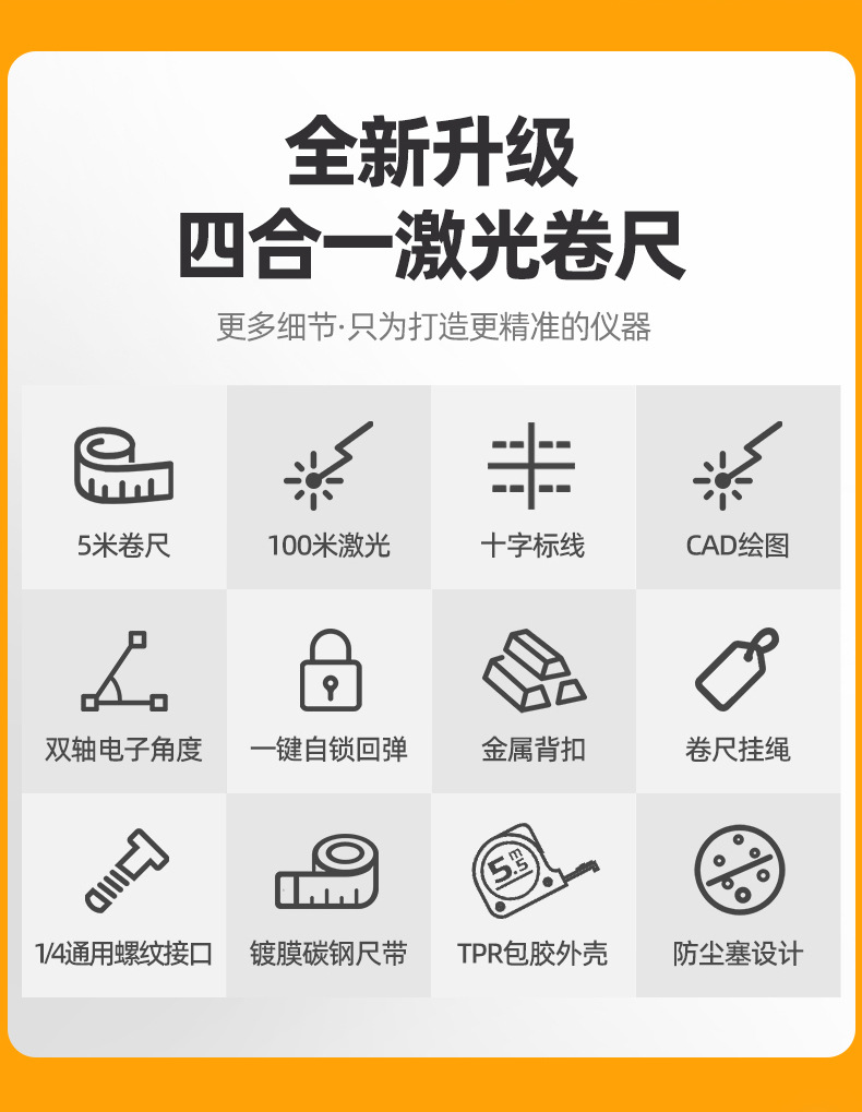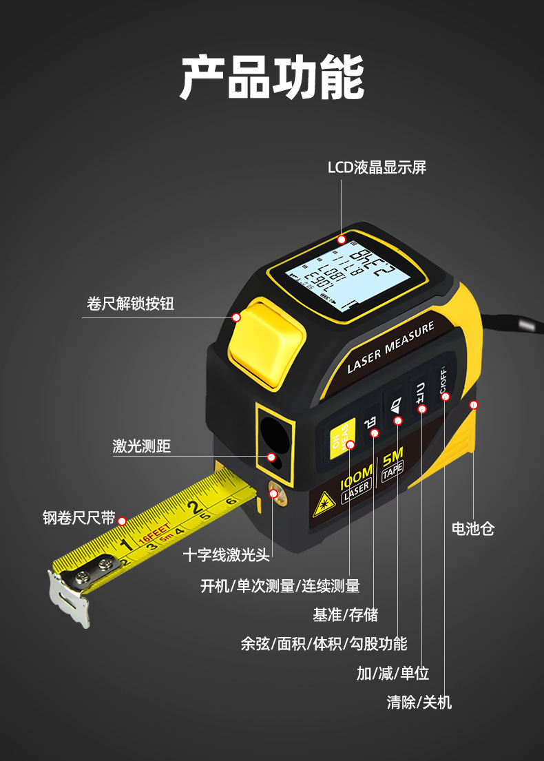 Английская версия 5m рулетка + 40m лазер + лазерная перекрестная маркировка + двухосный цифровой угол; Английская версия 5m рулетка + 60m лазер + лазерная перекрестная маркировка + двухосный цифровой угол; Английская версия 5m рулетка + 80m лазер + лазерная перекрестная маркировка + двухосный цифровой угол; Английская версия 5m рулетка + 100m лазер + лазерная перекрестная маркировка + двухосный цифровой угол
