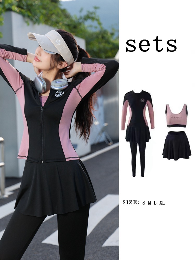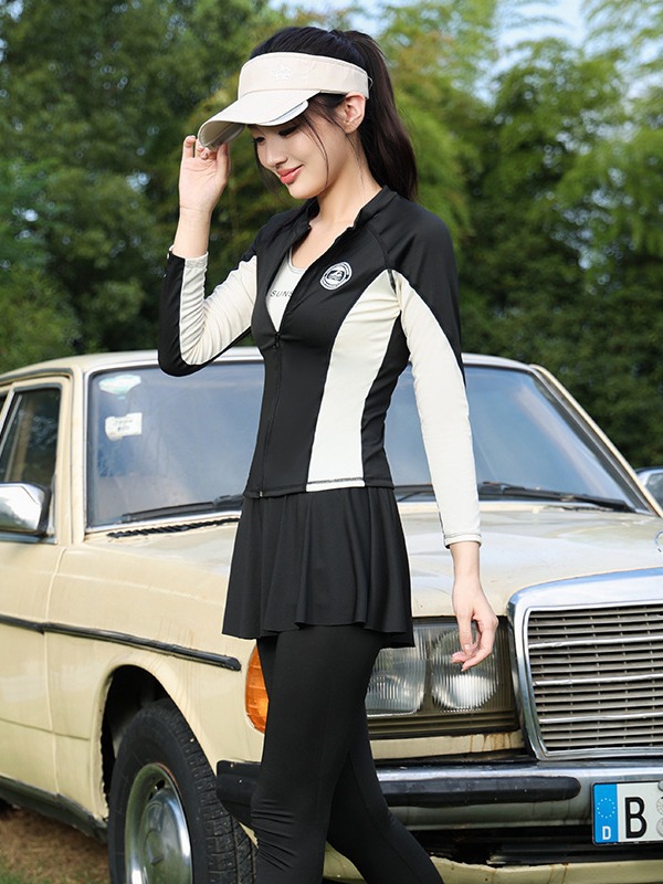Женский купальник из четырех частей, консервативные брюки с длинными рукавами и защитой от солнца, новинка 2024, купальник, гидрокостюм для серфинга большого размера