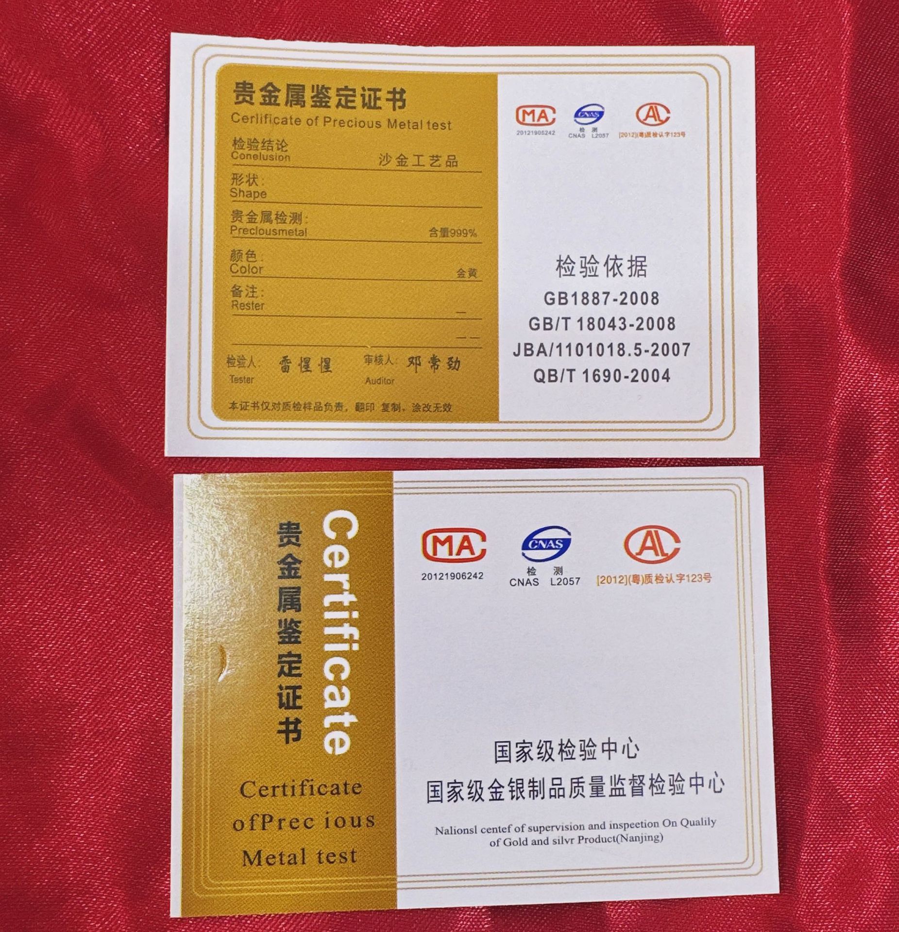 золотой сертификат; сертификат серебра; сертификат s9999; Сертификат белого нефрита; зеленый сертификат; Сертификат переключения