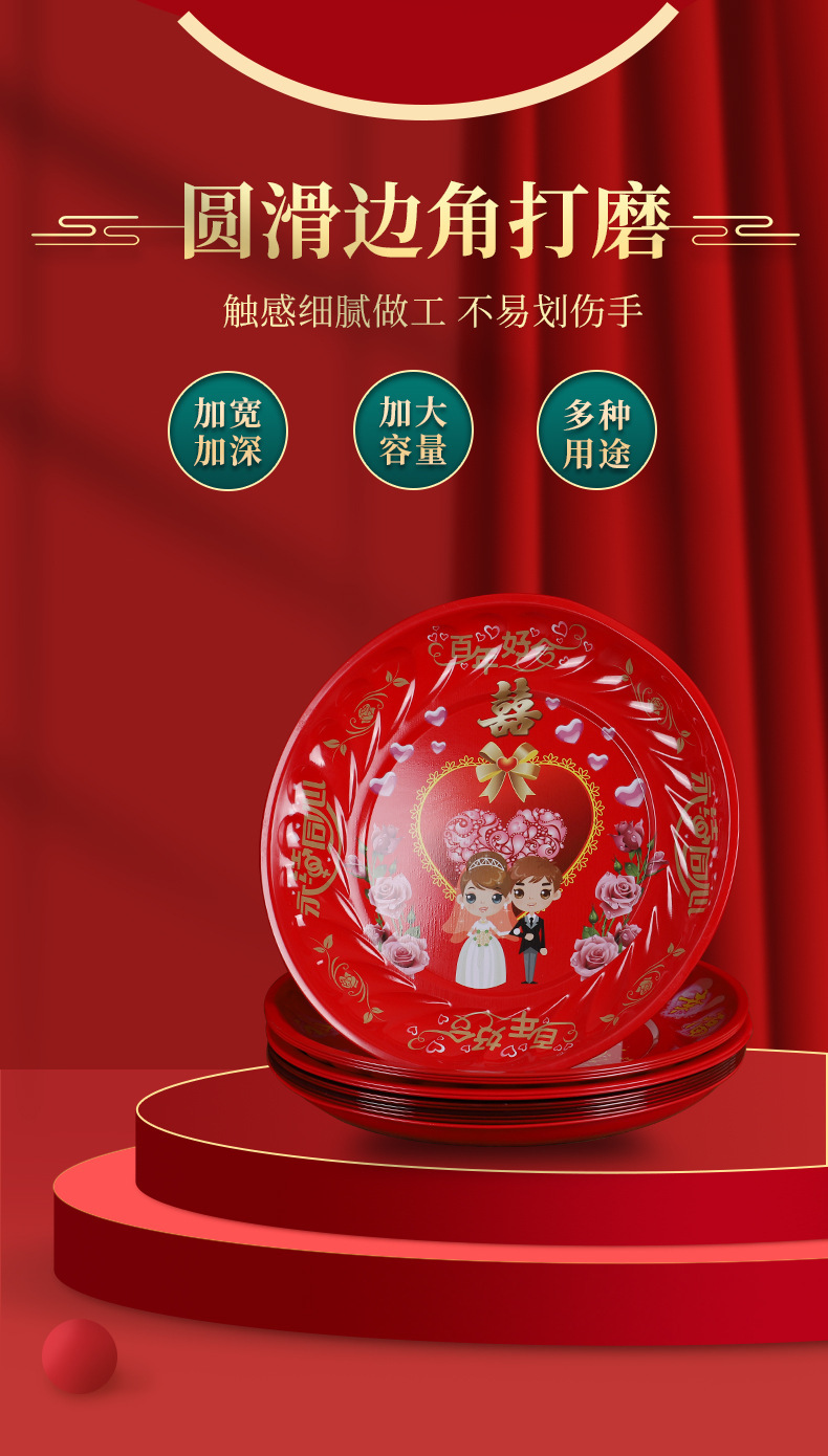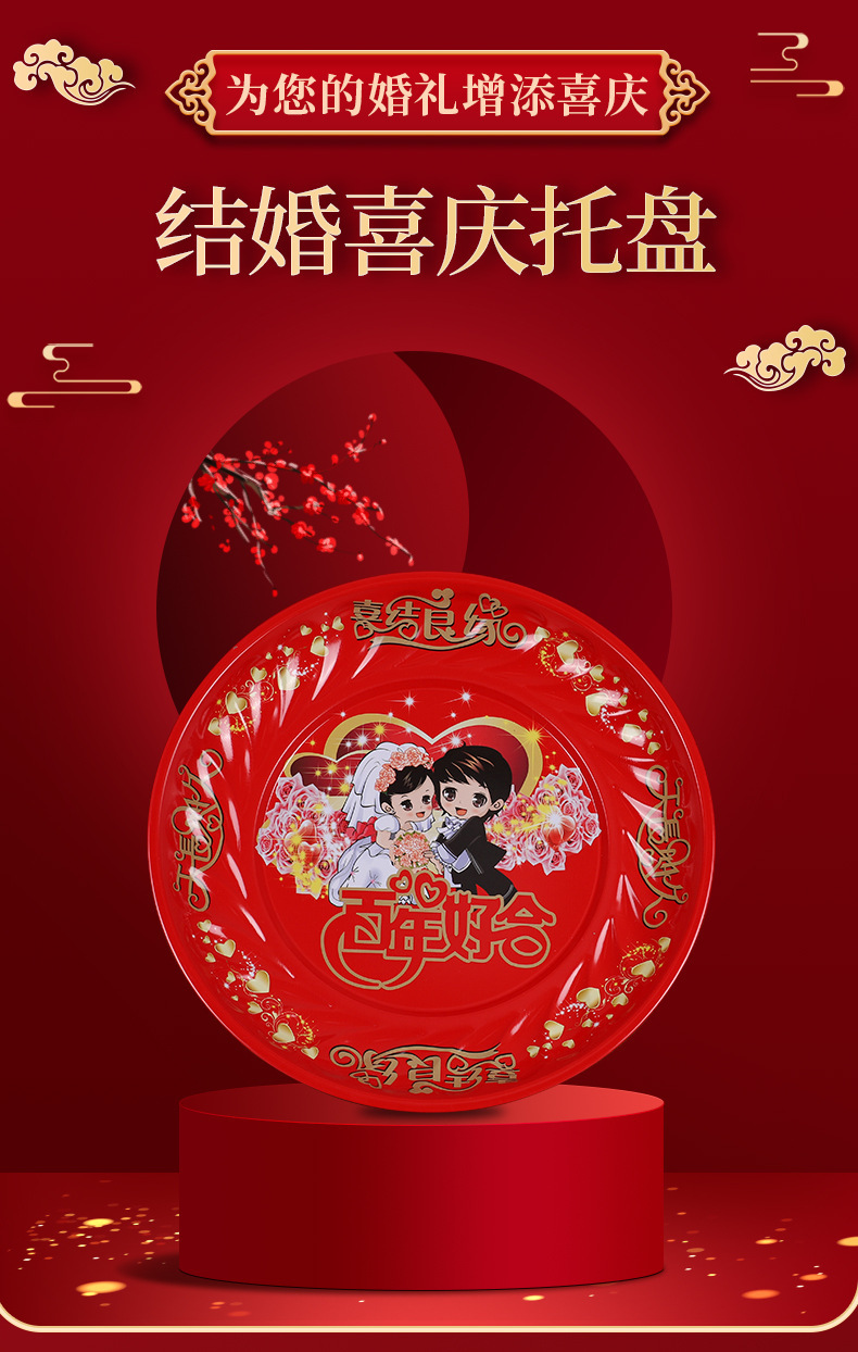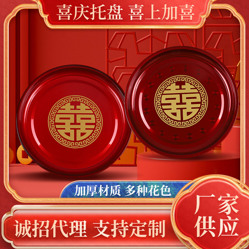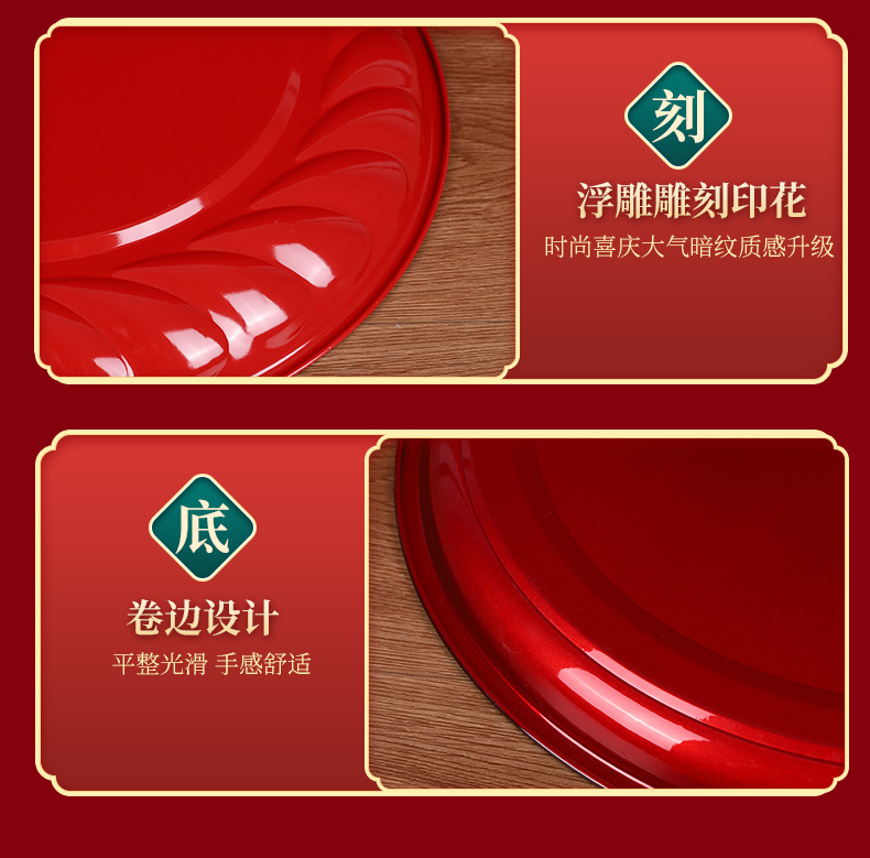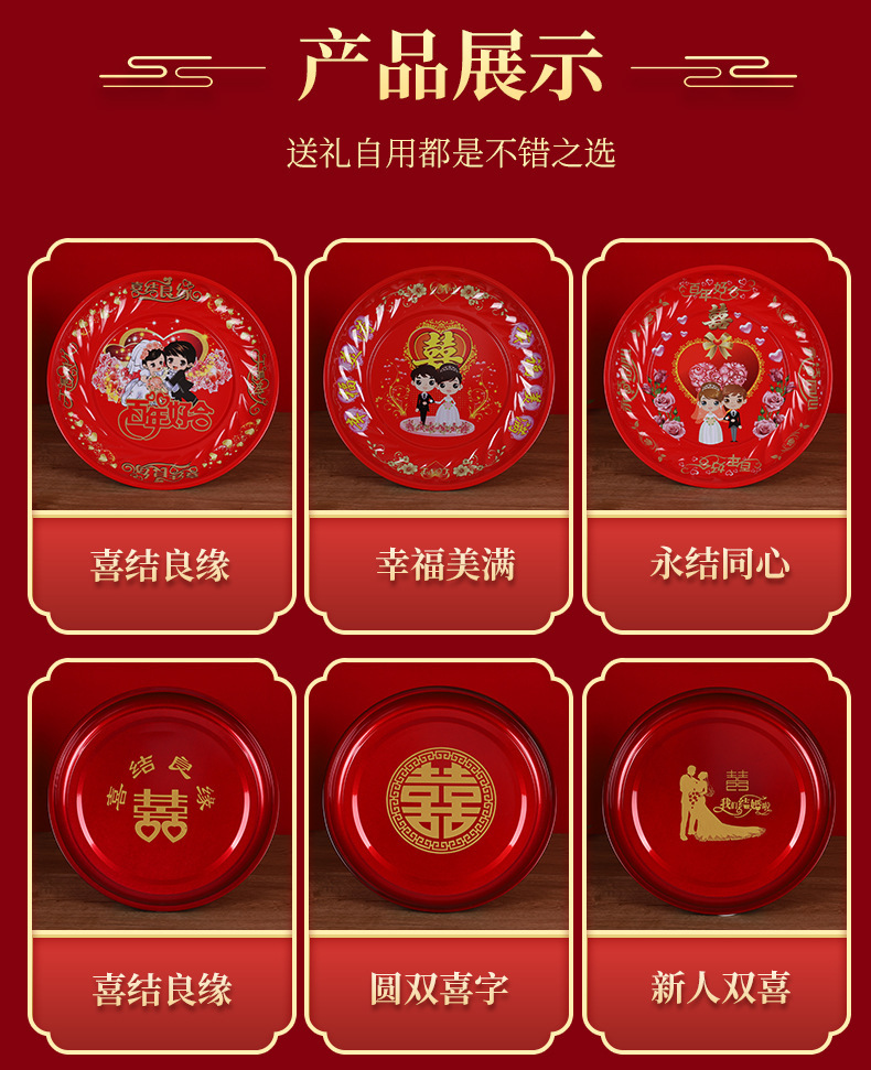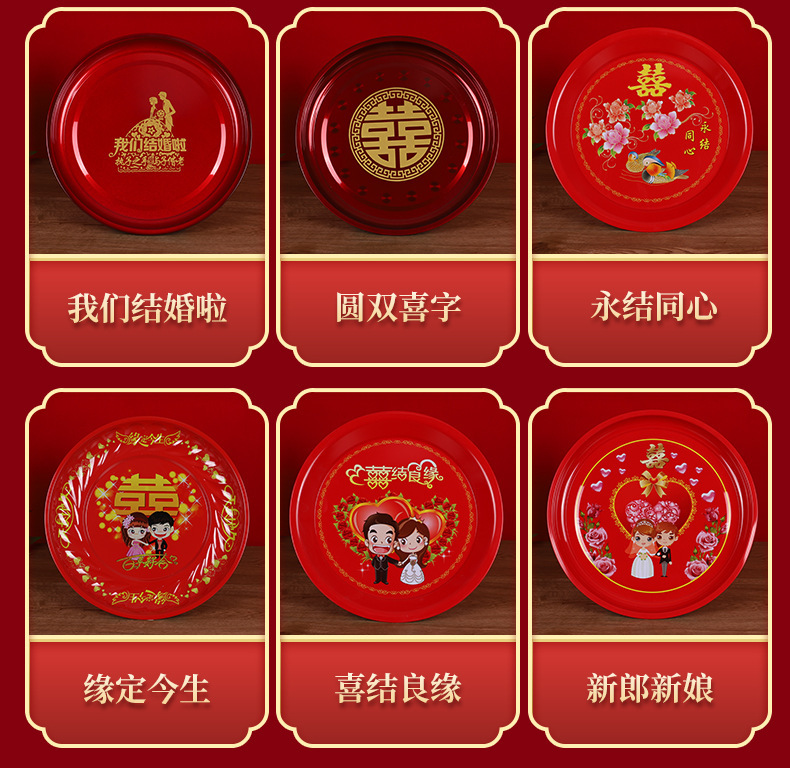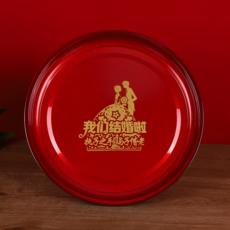 Кондитерская тарелка Китайская круглая чайная тарелка из нержавеющей стали праздничная красная тарелка с фруктами