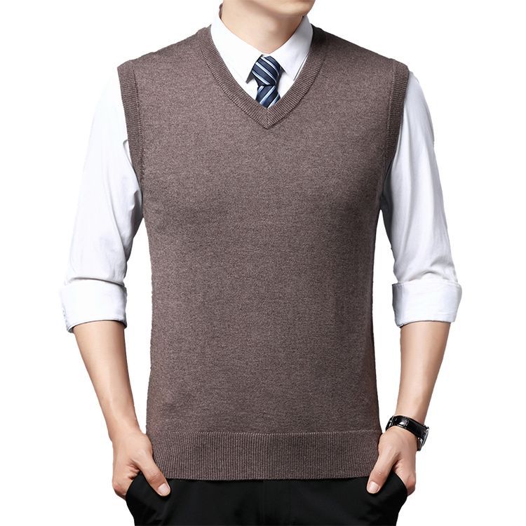 Однотонный шерстяной жилет для мужчин на осень и зиму, шерстяной свитер с V-образным вырезом, утепленный свитер, жилет для мужчин среднего возраста, наряд для папы.