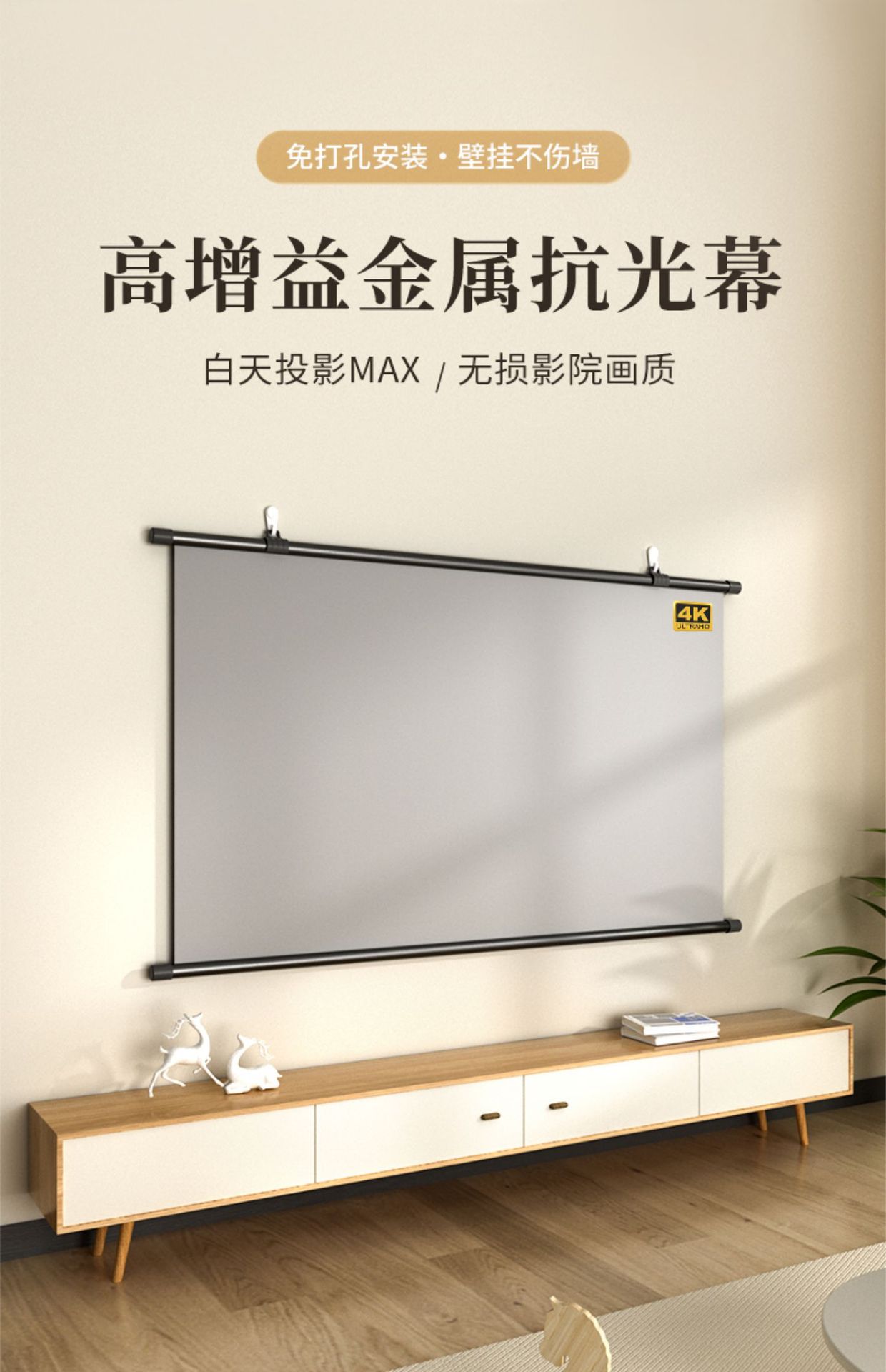 Новый домашний 4K светостойкий металлический проектор занавес HD светостойкий съемный без пробивания настенный занавес
