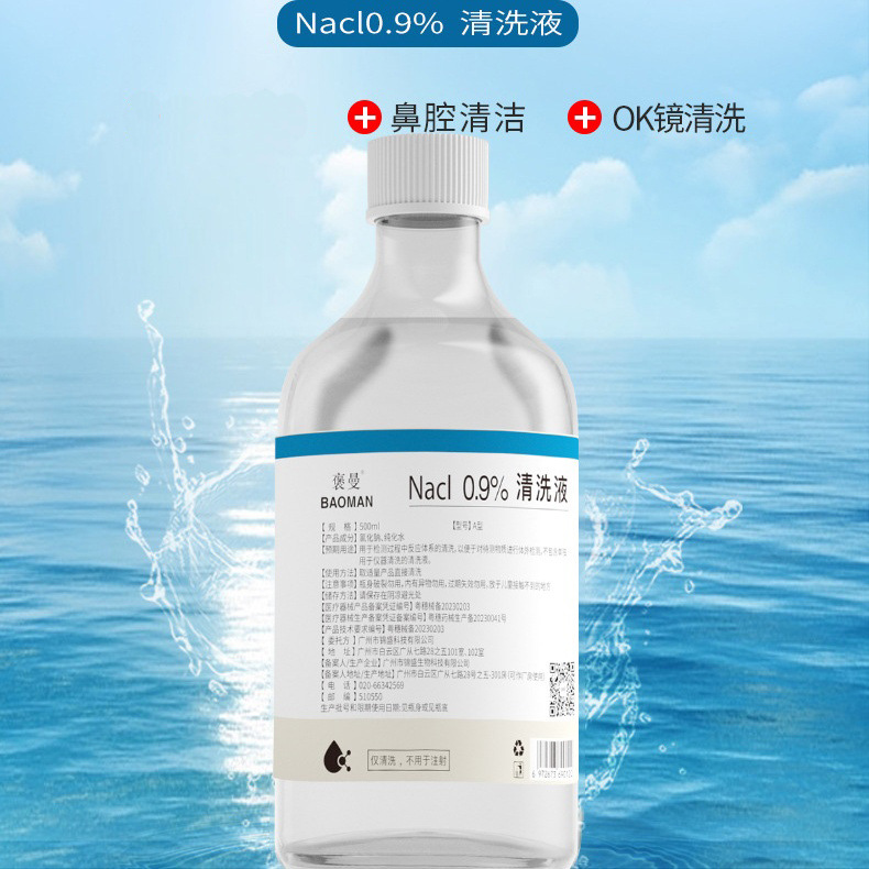Раствор для промывания из 0,9% хлорида натрия, 500 мл, стерильный, для полоскания рта, очищения носовых пазух, очистки линз OK