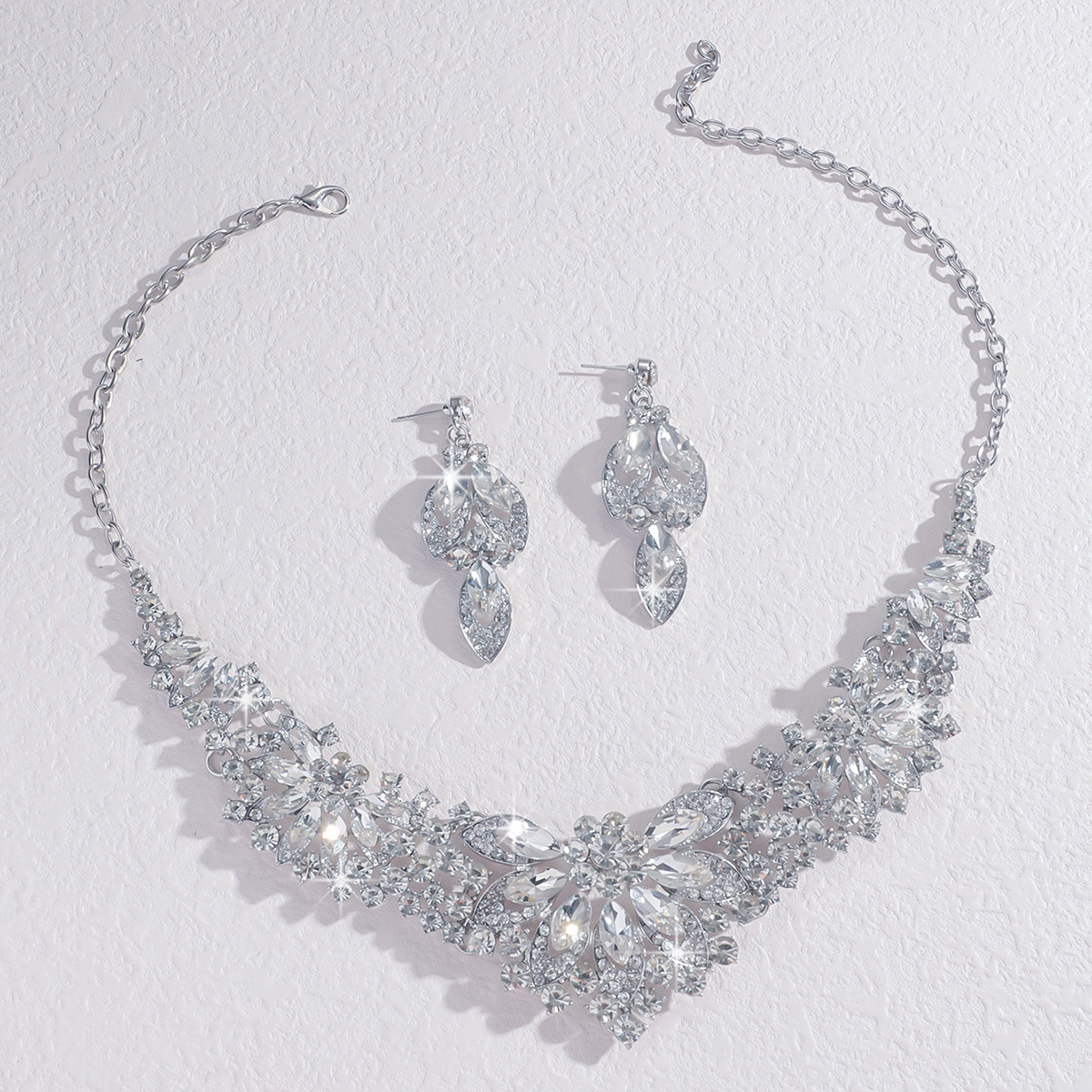 Европейская и американская невеста Свадебное ожерелье Серьги Свадебное платье Полное бриллиантовое цветочное хрустальное бриллиантовое украшение набор аксессуаров