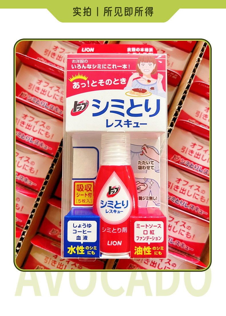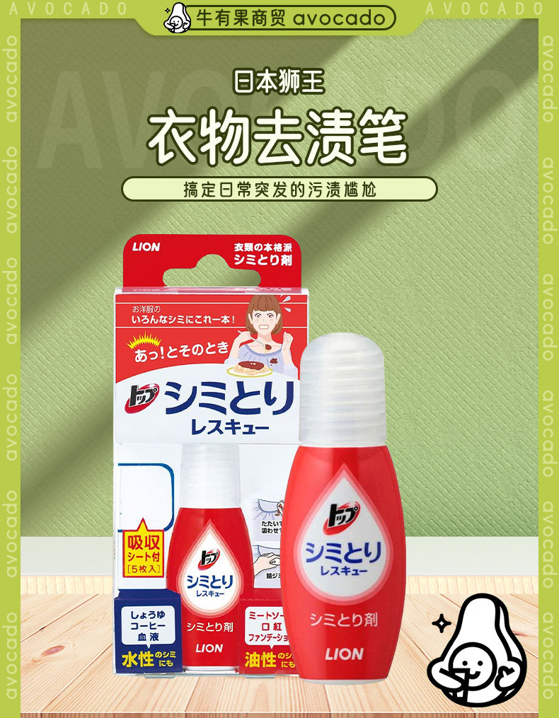 Ручка-пятновыводитель Lion, 17 мл, импорт из Японии, для белых вещей, пуховиков, удаления масляных пятен, не требует стирки, портативная.